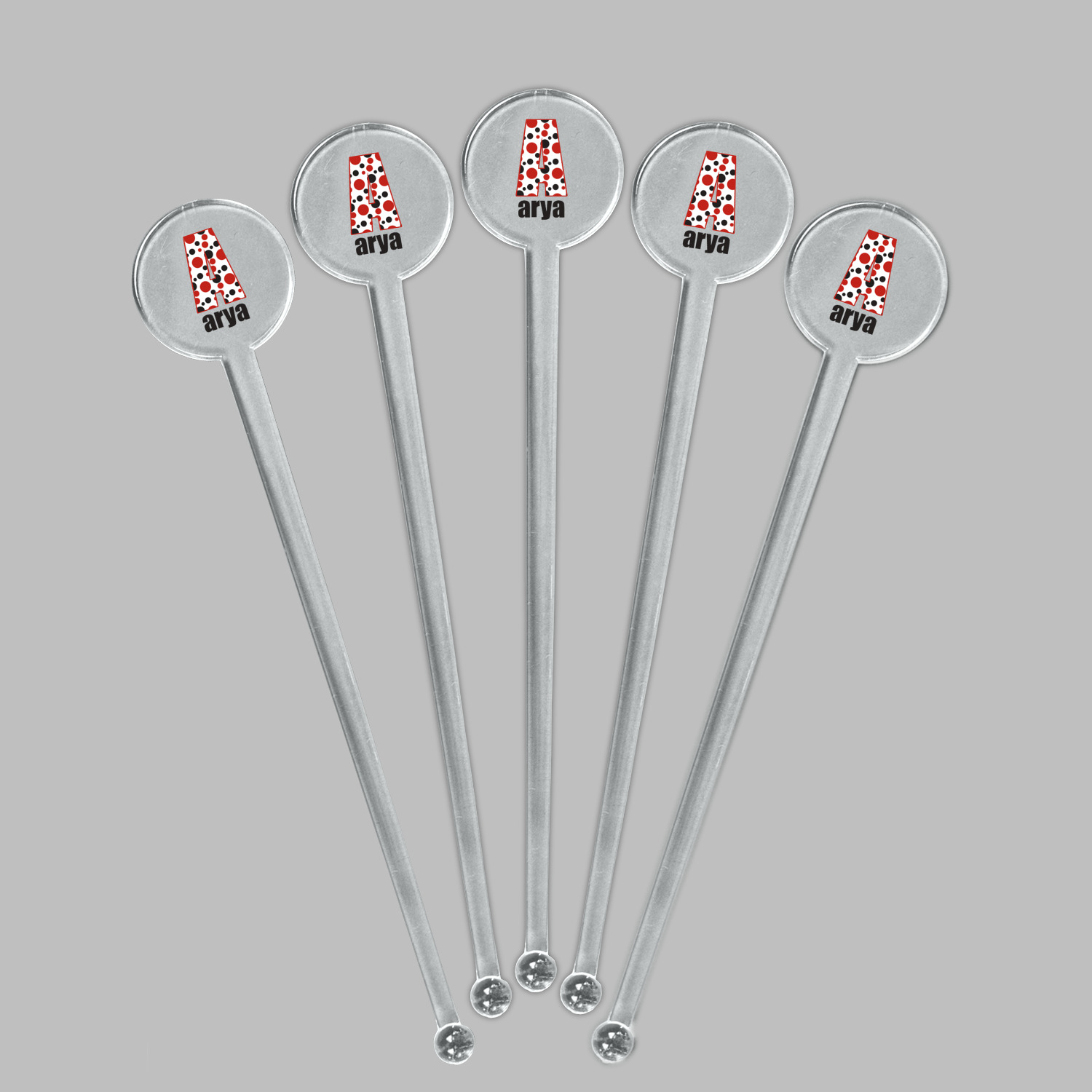 Shape + Symbol Designs for 7" Round Plastic Stir Sticks - Clear