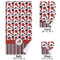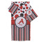The classic red, black, and white color scheme has been revived with a touch of fun. The top part of this design if filled with different shaped polka dots in black and red that pop on a white background. The bottom half of the design has coordinating colored stripes that complete this fun look.