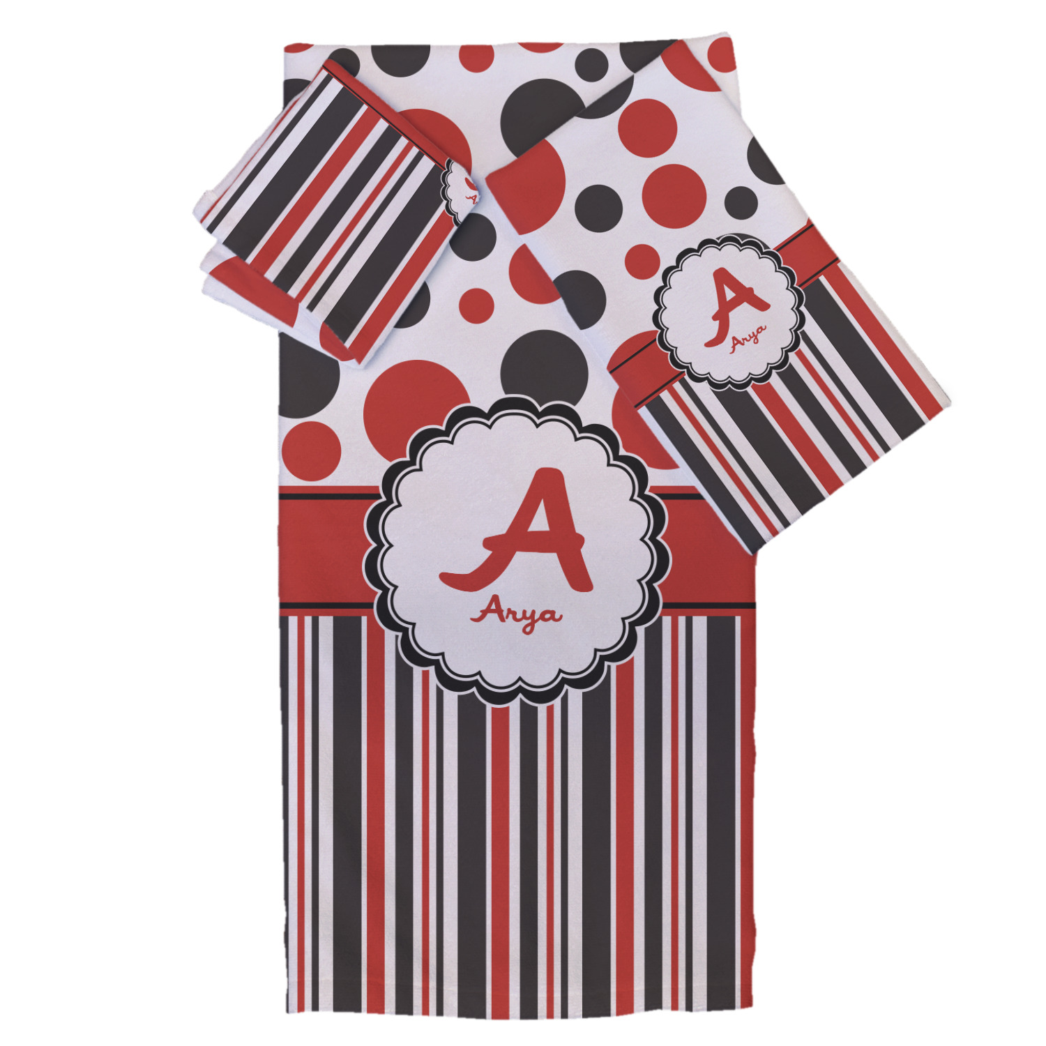 Deck out your own bathroom by designing a bath towel set to match the decor and colors in your bathroom. Personalizing it with your monogram, name or initial is your choice and completely free of charge. Browse our designs and customize one.