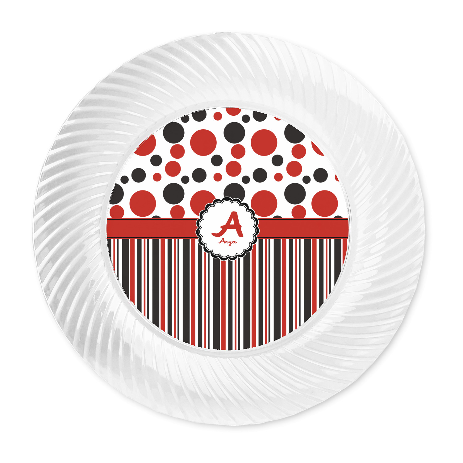 Made from a beautiful clear plastic plate as a base, your design is printed to the underside of the plate. The outside of these disposable plates has a classic swirl texture to it for a high quality look and feel.