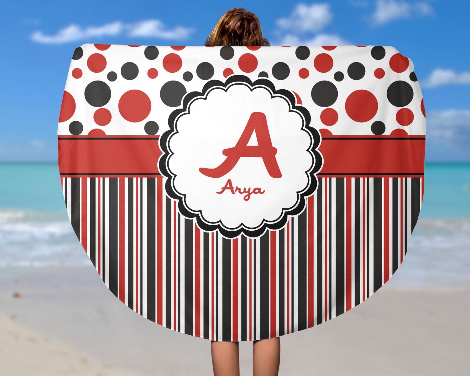 Think out of the box on your next beach, pool, or picnic day in style on your personalized round towel. This must have durable accessory is the perfect size for keeping you, and your possessions out of the sand. Sprawl out in the sun without getting your hands dirty, the unique round design allows for a full range of motion.