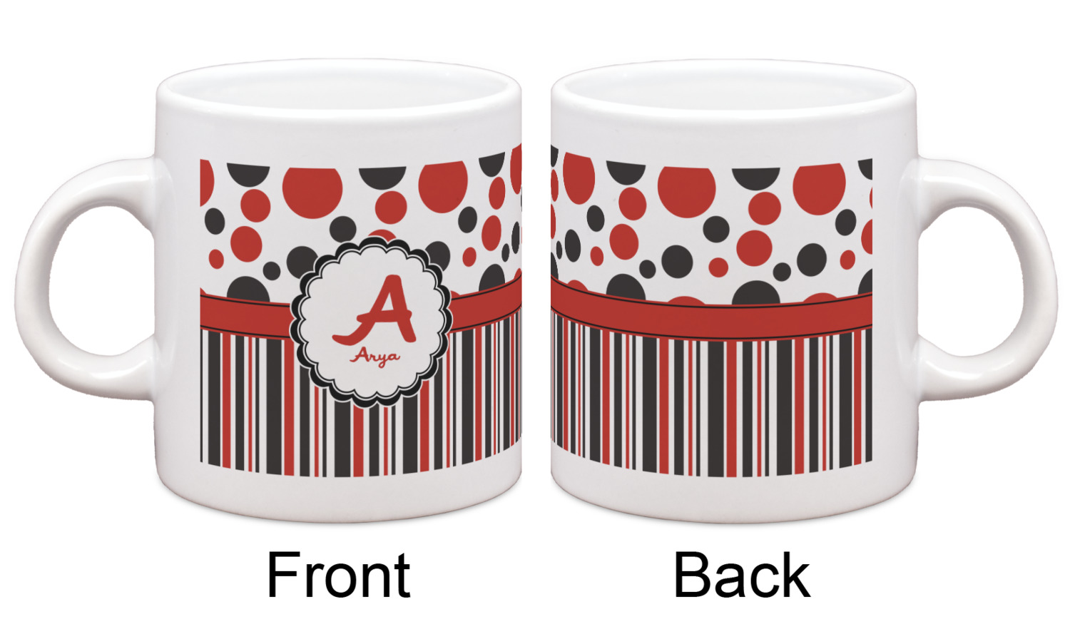 Each of our espresso mugs is a ceramic material sure to keep your drink warm. Personalize one cup for yourself, or order a set of 4! Its the perfect little gift for any coffee lover! We carry two sizes for you to personalize - 3 oz. (approx. 3.25" x 2.325" x 2.625") or 6 oz. (approx. 4" x 2.9" x 2.9"). Our 3 oz. mug is perfect for that single shot espresso while our 6 oz. mug can be your next favorite cappuccino cup holding two shots of espresso!