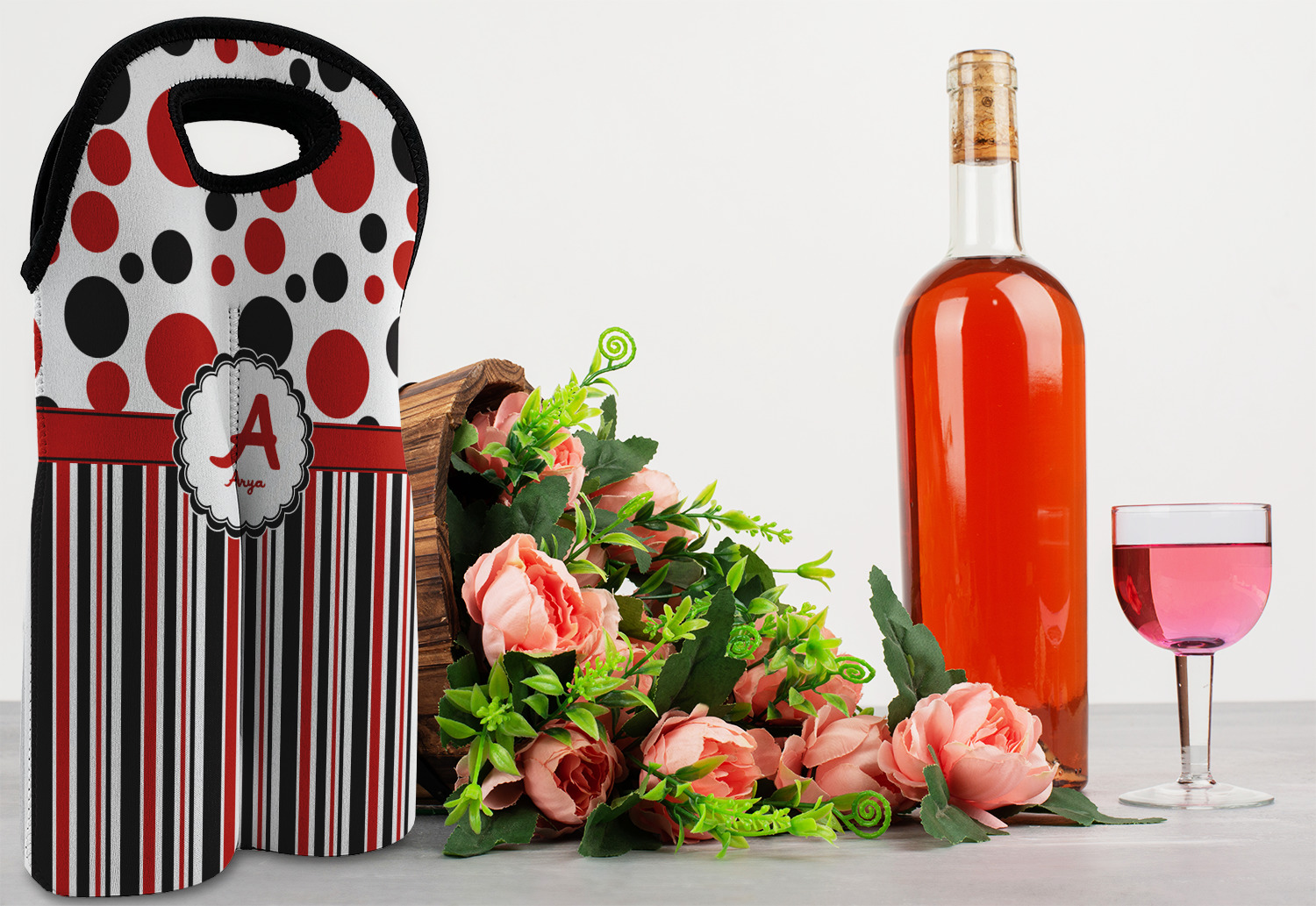 | SKU | mi-wine-tote-double+Red-Black-Dots-Stripes |