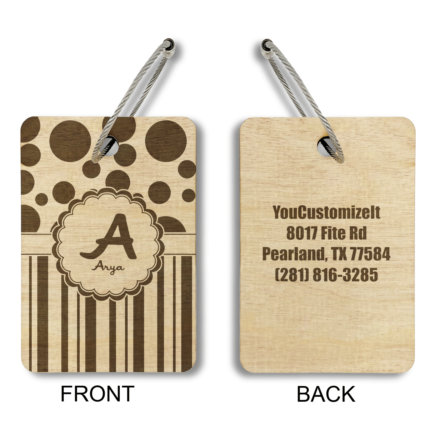 Made from a premium hardwood, these luggage tags are laser engraved and cut just for you. The front contains your design of choice and the back has your contact information to ensure your luggage gets back to you if ever lost.