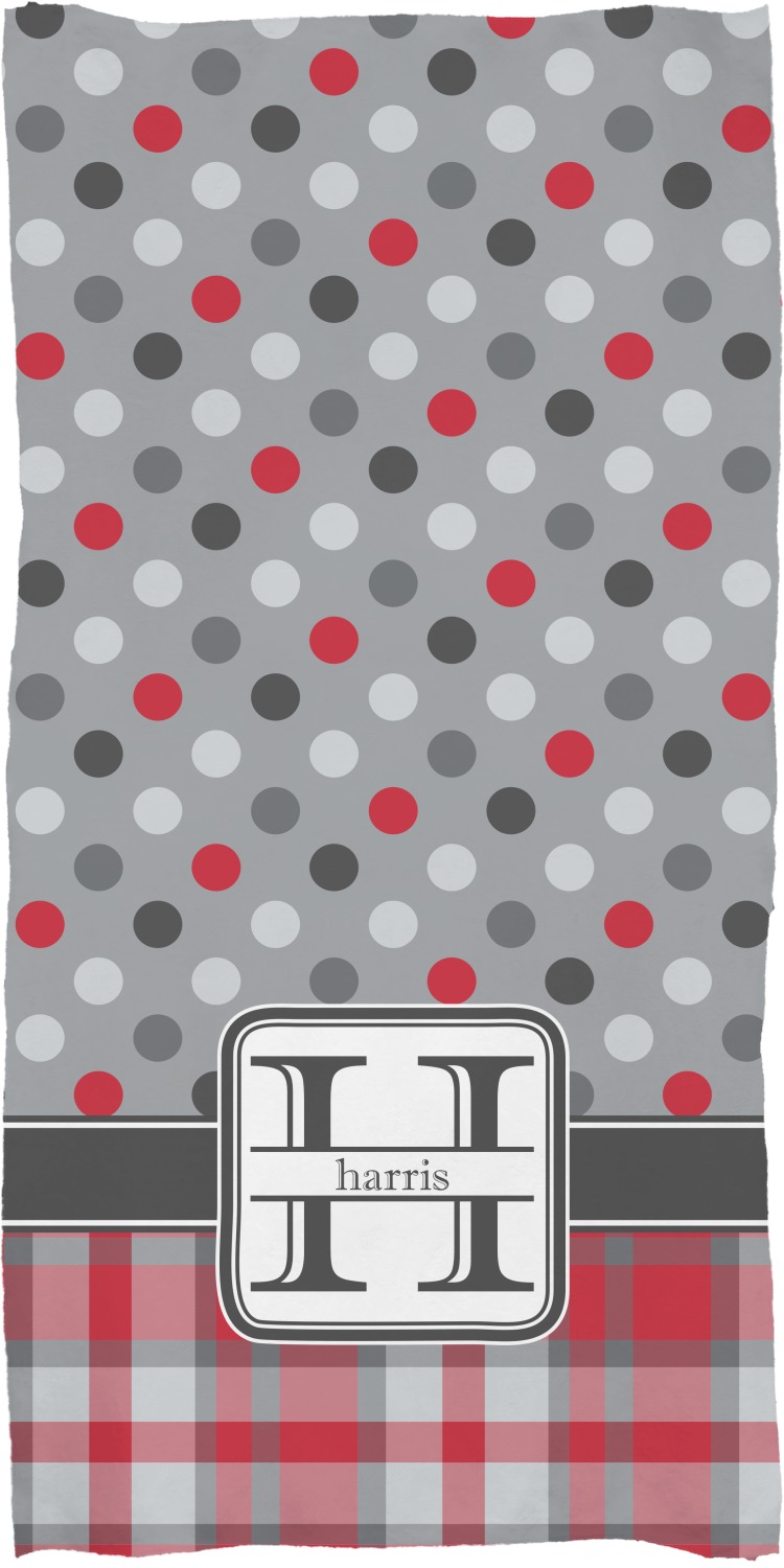 These customized bath towels are slightly larger than your standard towel and are the ideal size for wrapping around your body. They measure approximately 60" x 30". Your customization is displayed across the entire front face of the towel, while the back is white.