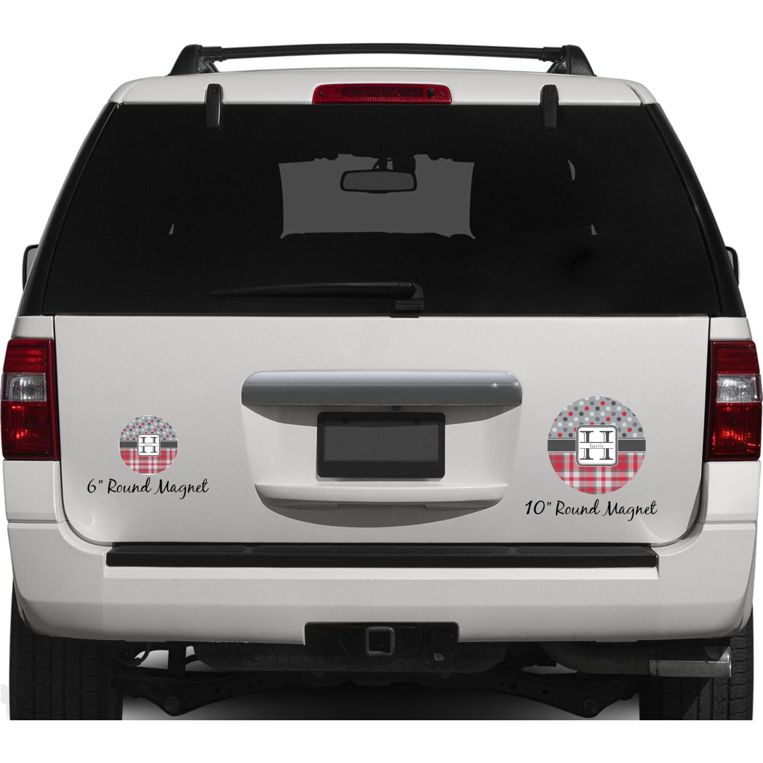 Your personalized car magnets are available for purchase in two shapes and two sizes. We carry round and square editions; each shape can either be 6 by 6 inches, or 10 by 10 inches, depending on your needs. Both versions are 1 millimeter thick, which is considered, within the industry, as the ideal thickness for automobile magnets. The magnetic car decals will adhere to any smooth, metal surface of your cars body, such as the trunk door or a side panel. However, please note that some vehicles are constructed from fiberglass bodies, which prevents the adhesion of anything magnetic. We advise that you test your vehicle before purchasing these magnets.