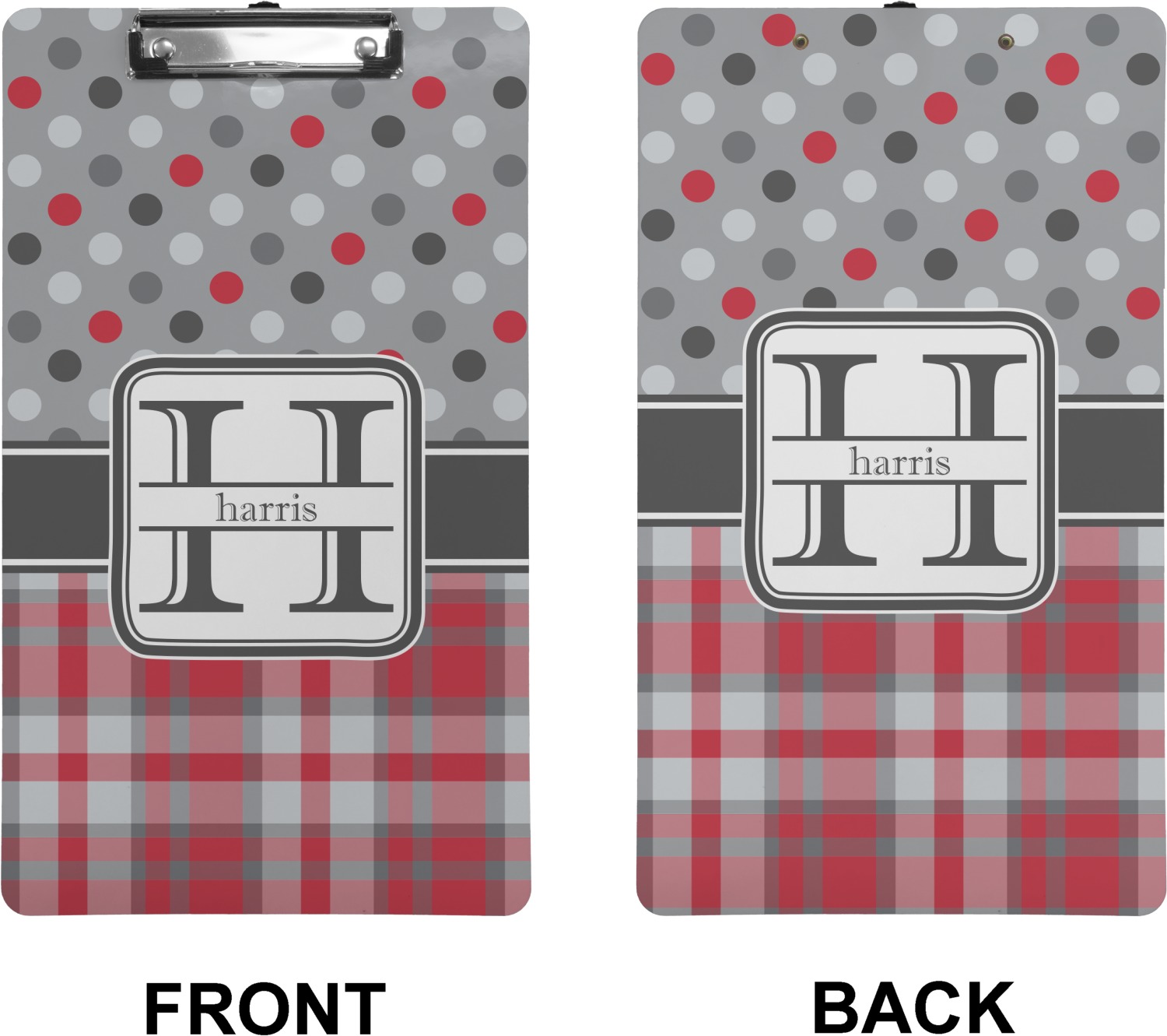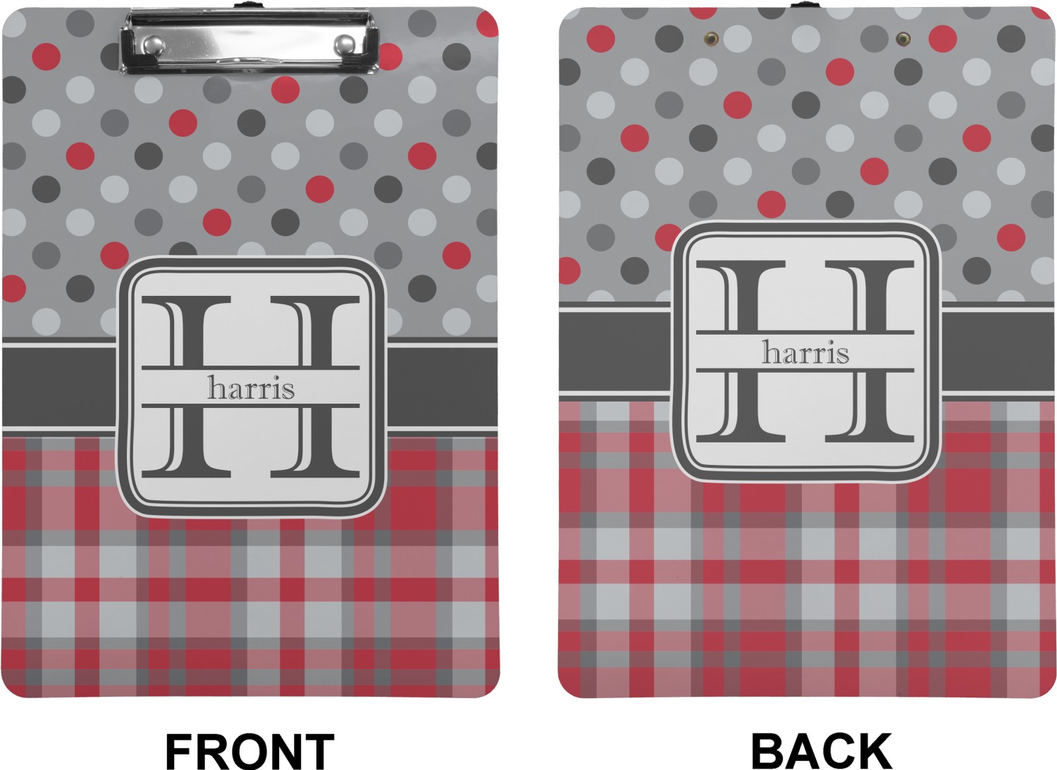 These custom clipboards are made from a strong hardboard and are coated with a glossy finish that accentuates the colors of your design. Alongside a retractable hook at its top, these decorative clipboards also feature sturdy clips to secure several sheets of paper. We sell these clipboards in two separate sizes. Our letter size measures at 12.5" L x 9" W, while our legal clipboard is approximately 15.5" L x 9" W. On both models, your personalization is printed on both sides of this clipboard and can be customized individually.