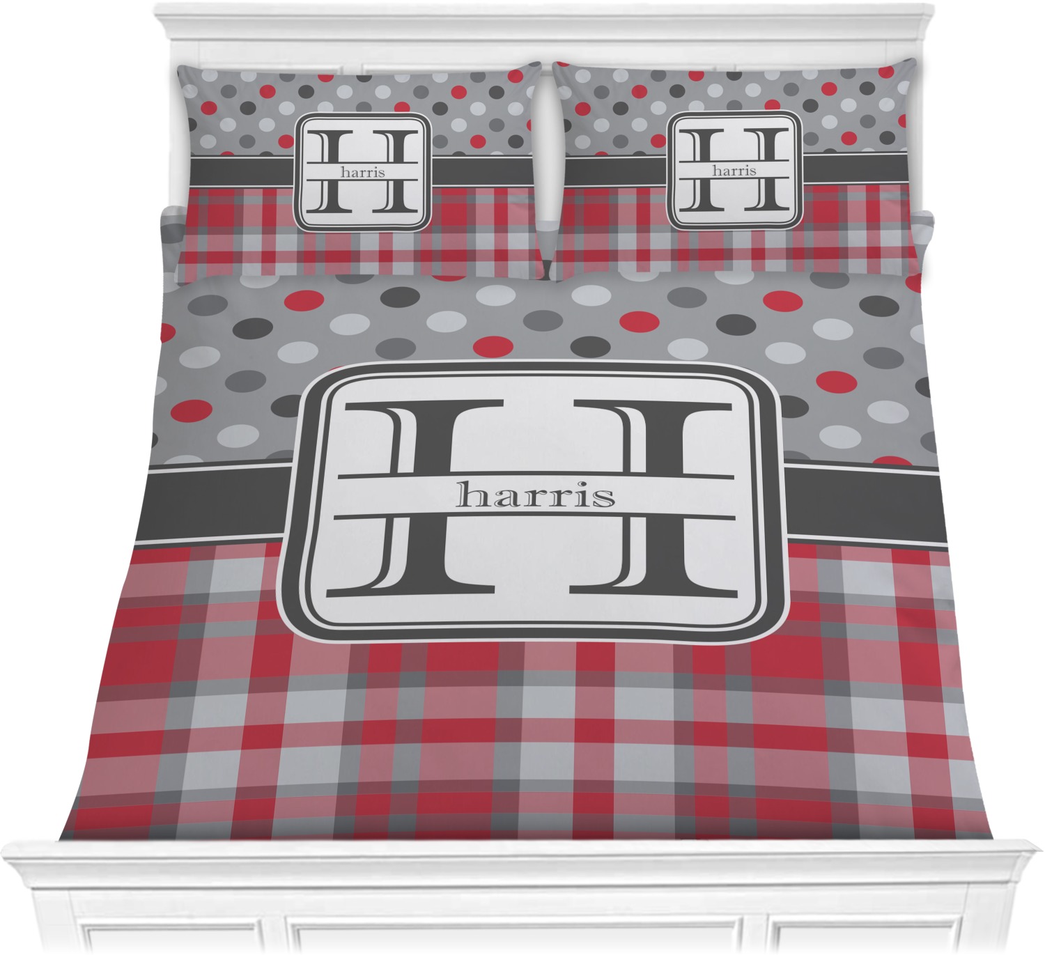 We have broken all the rules and put plaid and polka dots together in one design and just look at the outcome. It is simply divine! Using our shades of gray and grounding them with red pulls both the plaid and polka dot patterns together.