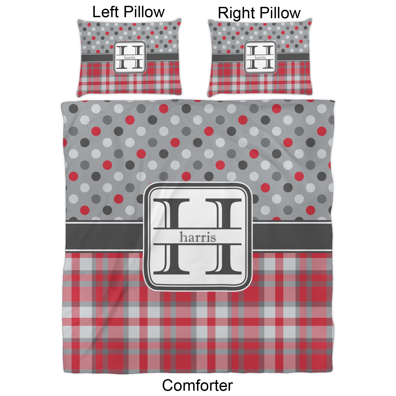 We have hundreds of different design templates for you to choose from Each design can be customized to your exact specifications. Not only can you customize the comforter, but you can also customize each pillow sham e.g. for a queen comforter set you have have Mr & Mrs pillow shams with the last name on comforter.