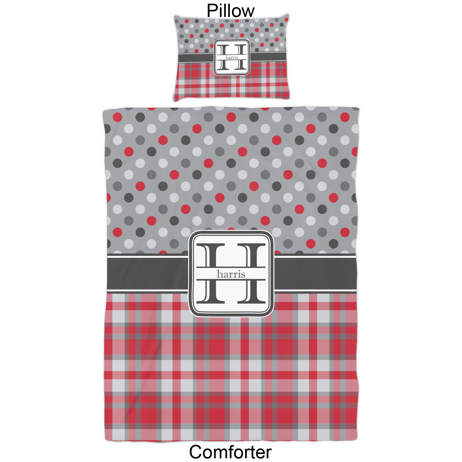 We have hundreds of different design templates for you to choose from Each design can be customized to your exact specifications. Not only can you customize the comforter, but you can also customize each pillow sham e.g. for a queen comforter set you have have Mr & Mrs pillow shams with the last name on comforter.