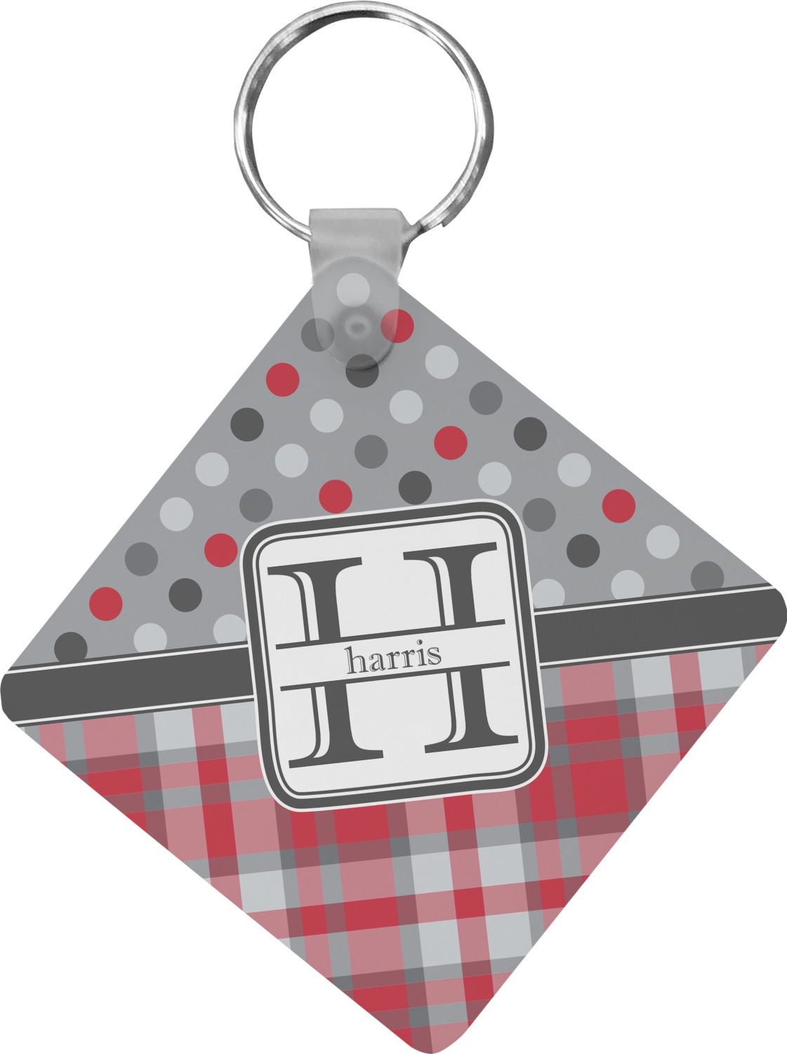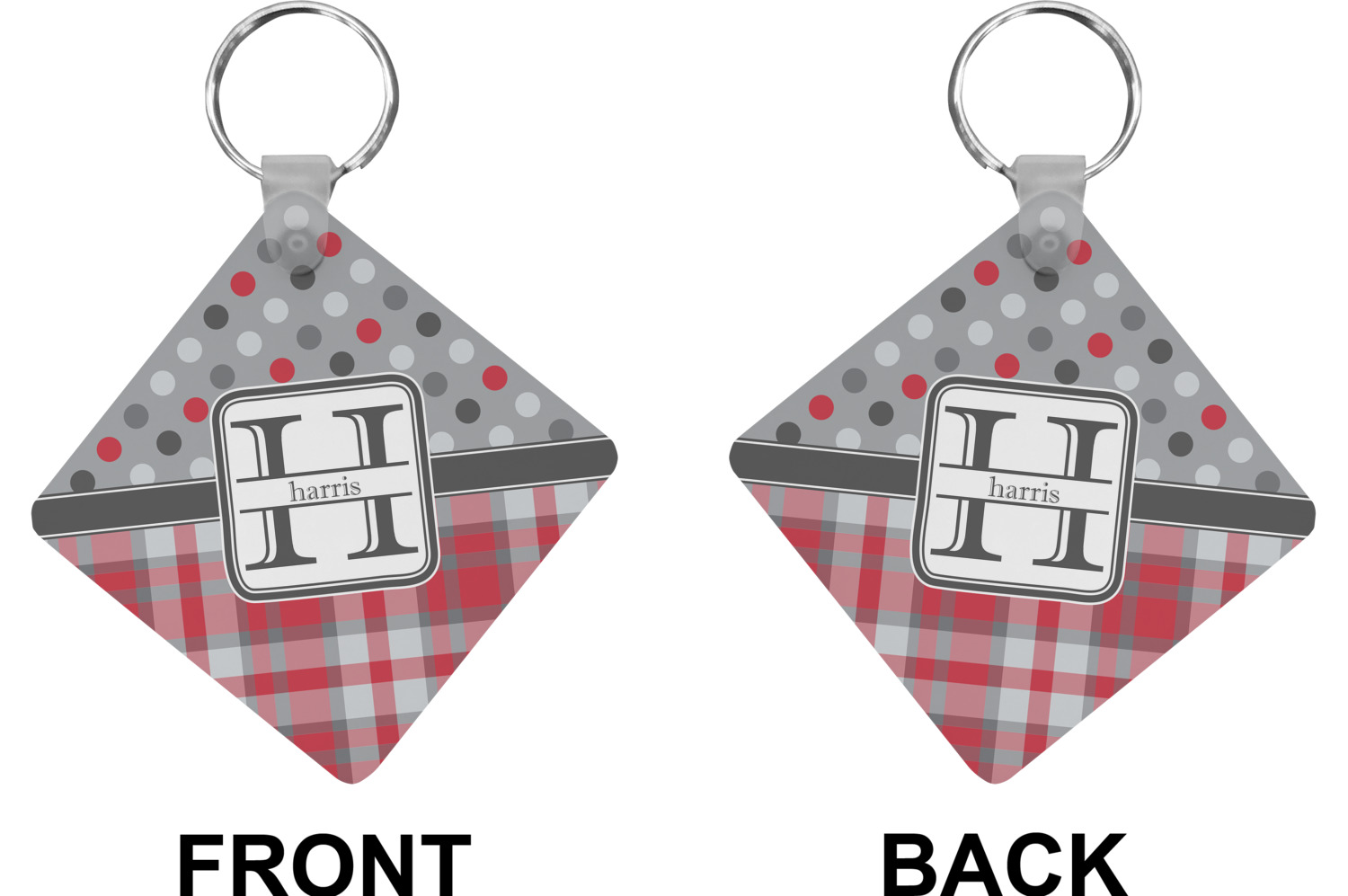 Our personalized keychains attach to the included metal, split key ring with a plastic, removable snap. Since a metal ring is included with your purchase, you have the liberty to keep your keys together on the ring, with or without your unique keychain. We offer this keychain in three different shapes: circle, heart, or diamond. We print your personalized design(s) on both sides of the key chain, and the surface has a glossy, reflective finish that only emphasizes your design. Each keychain is approximately 2.25 by 2.25 inches.
