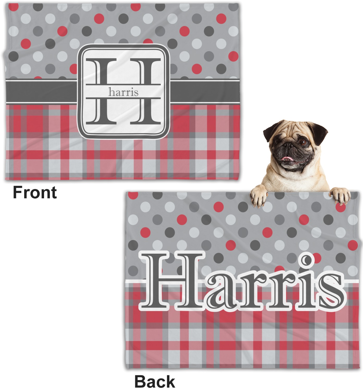 These dog blankets are crafted from a gentle, soft-to-the-touch, minky material. We print your customizations, either matching or differing, on both the top and underside of the blanket. These personalized dog blankets are available in two sizes: regular and large. Our regular size, at 40" x 30", accommodates small and some medium size dogs. At 60" x 50", our large dog blanket is a better fit for bigger breeds. Though specialized for dogs, these blankets still make a thoughtful gift for your favorite feline, or any other pet in mind!