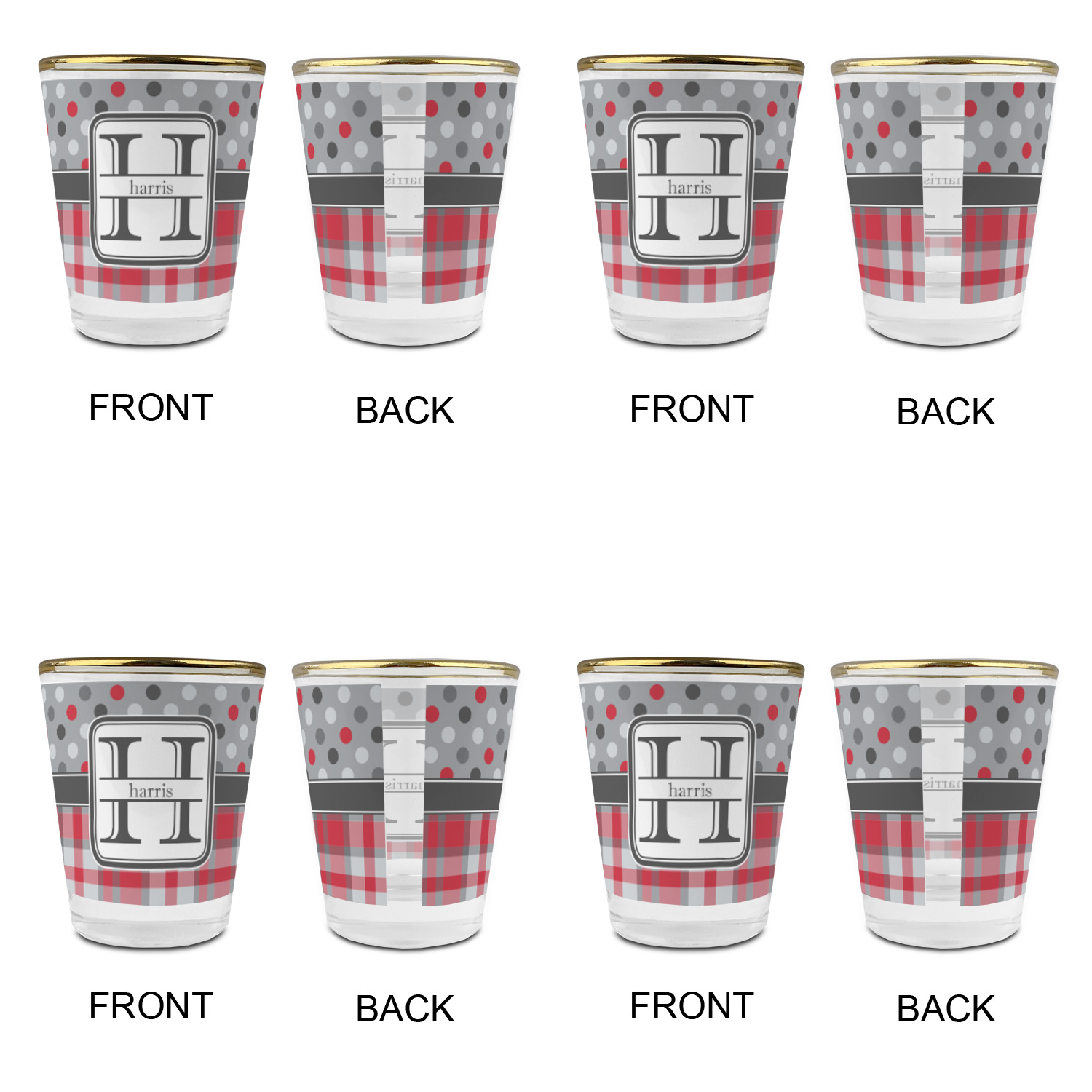 Shape + Symbol Designs for Glass Shot Glasses - 1.5 oz - with Gold Rim - Set of 4