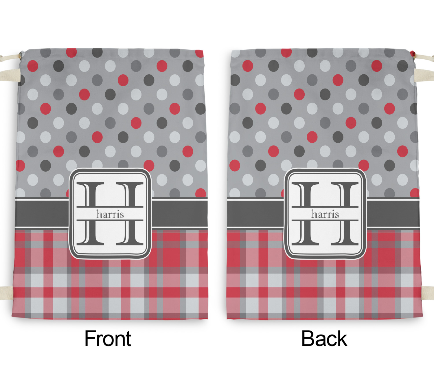 Carry your laundry in style with these customized laundry bags. Available in two sizes, featuring a natural colored woven strap and a cinch cord, these bags hold a lot of clothes or anything else you want to fit in them.