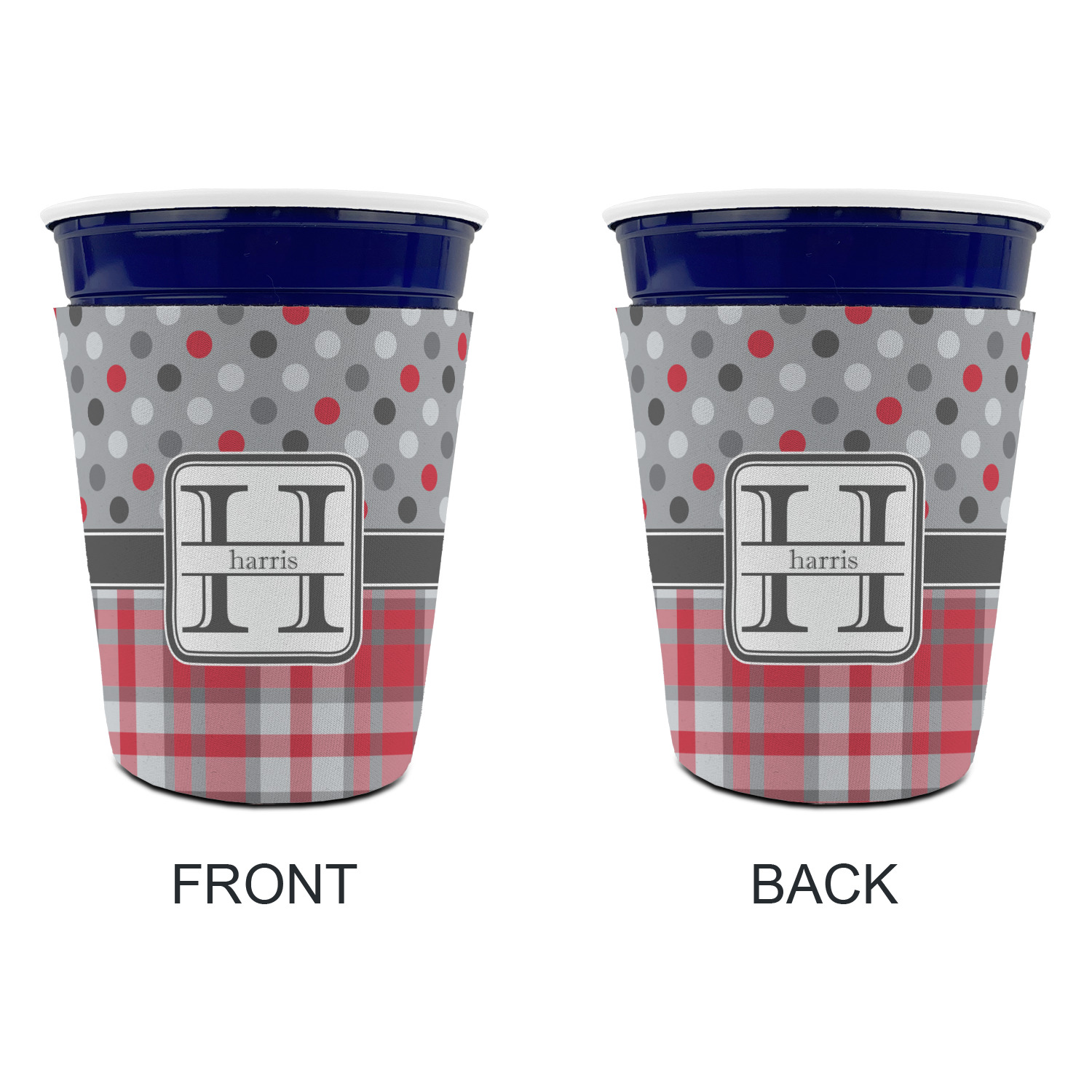 Made from neoprene with a polyester outer fabric and sewn seams, these premium quality party cup sleeves are very durable and will hold up to heavy use. They are available in 2 styles - with a bottom or just a sleeve to go around the outside of the tapered cup. The sleeve covers are about 4" tall and cover about 90% of the classic 16 oz. Solo cup.