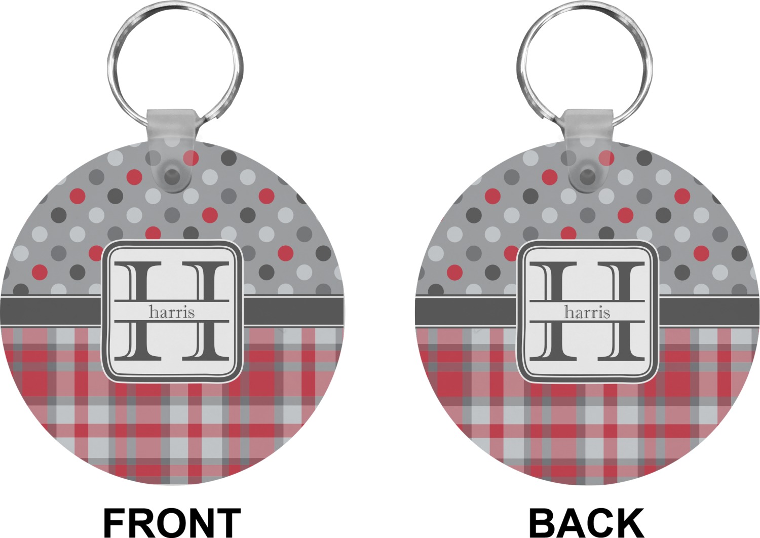 Our personalized keychains attach to the included metal, split key ring with a plastic, removable snap. Since a metal ring is included with your purchase, you have the liberty to keep your keys together on the ring, with or without your unique keychain. We offer this keychain in three different shapes: circle, heart, or diamond. We print your personalized design(s) on both sides of the key chain, and the surface has a glossy, reflective finish that only emphasizes your design. Each keychain is approximately 2.25 by 2.25 inches.