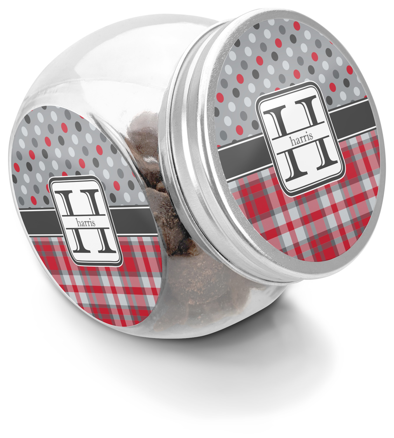 This treat jar is an excellent way to store treats for your favorite canine or feline. Moreover, their delicate, classy appearance makes them a tasteful addition to your countertop's décor. Crafted from clear glass, its unique construction and silver metal, screw-on lid allows for quick and easy access. Three, permanent, vinyl stickers are applied to both sides of the jar and lid, presenting your personalized design. The base of this glass, dog treat jar is 3.4" x 4.75", and the jar stands at 5" tall. Though on the smaller side, this jar is best suited for smaller treats or training treats.