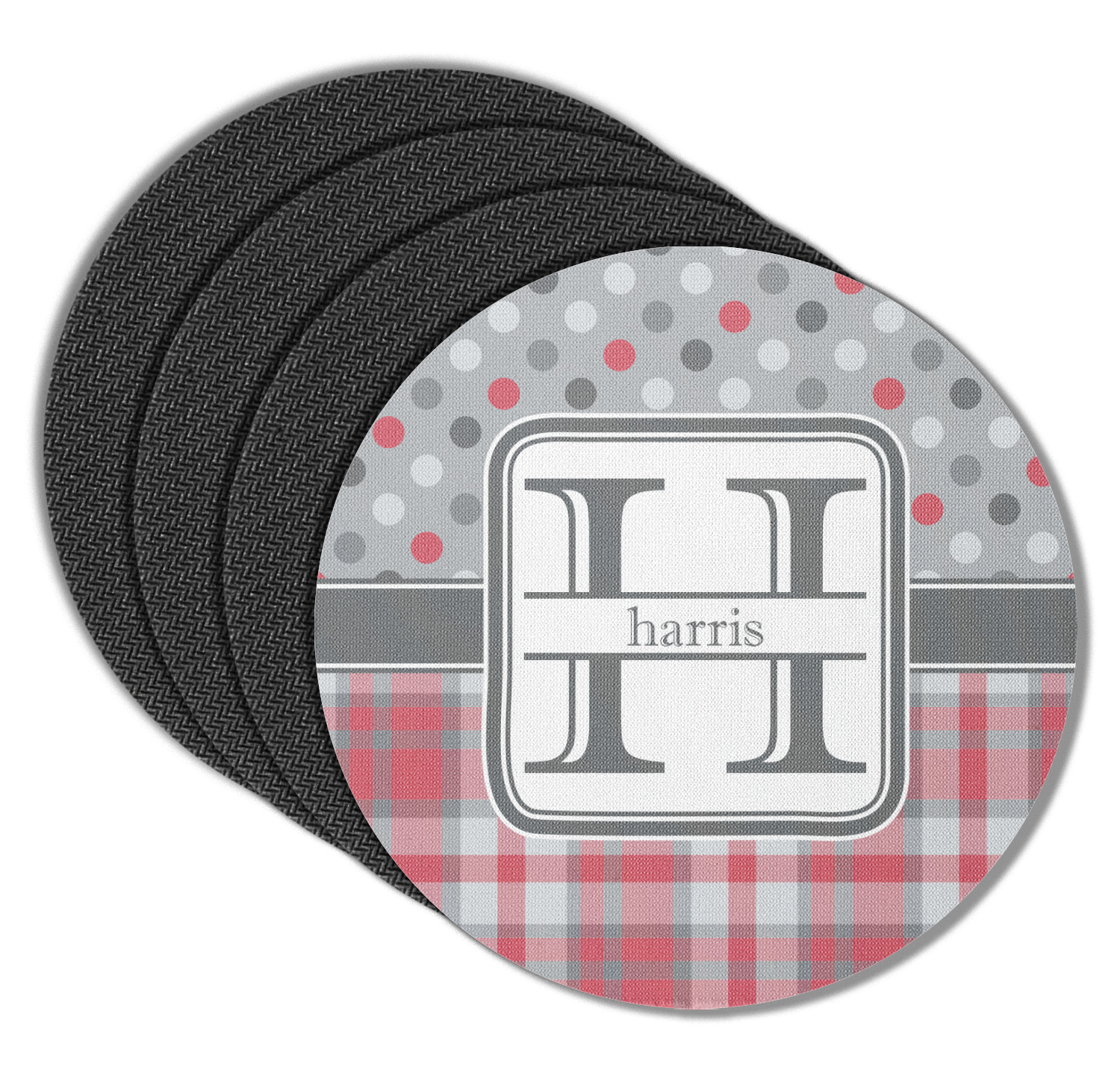 These drink coasters have a smooth, polyester top and a textured, rubber backing on its bottom. The non-slip rubber backing underneath works to keep any spills at bay. At 4 by 4 by 0.25 inches thick, these custom coasters are a suitable size for most drinkware. Your personalization is displayed atop the face of the cup coaster. We sell these rubber coasters in two different shapes: square and round. You can buy each shape as singulars or as a set of 4.