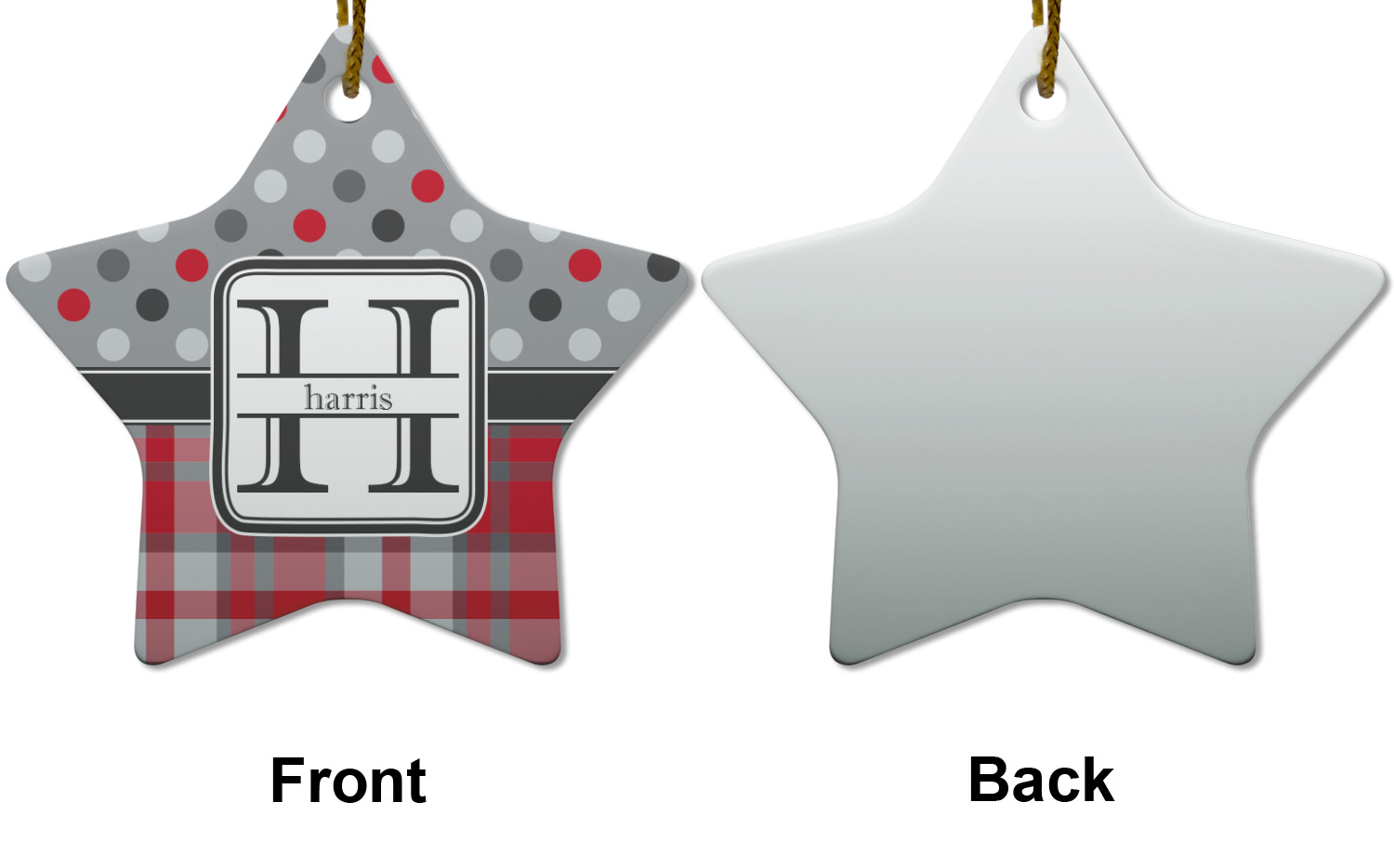 Have a happy holiday and share the joy of Christmas with your loved ones by hanging up personalized ceramic ornaments! Ornaments add a touch of who you are and the things you love onto the Christmas tree! Create custom ornaments for the kids and have them hang up their own star with their name, or pay remembrance this holiday to missed loved ones with our ceramic heart ornament. Browse many of our unique designs and customize them the way you'd like! From monograms, logos, and patterns, we have it all! You can even upload a photo of your family for us to print onto the ornament! The possibilities are endless!