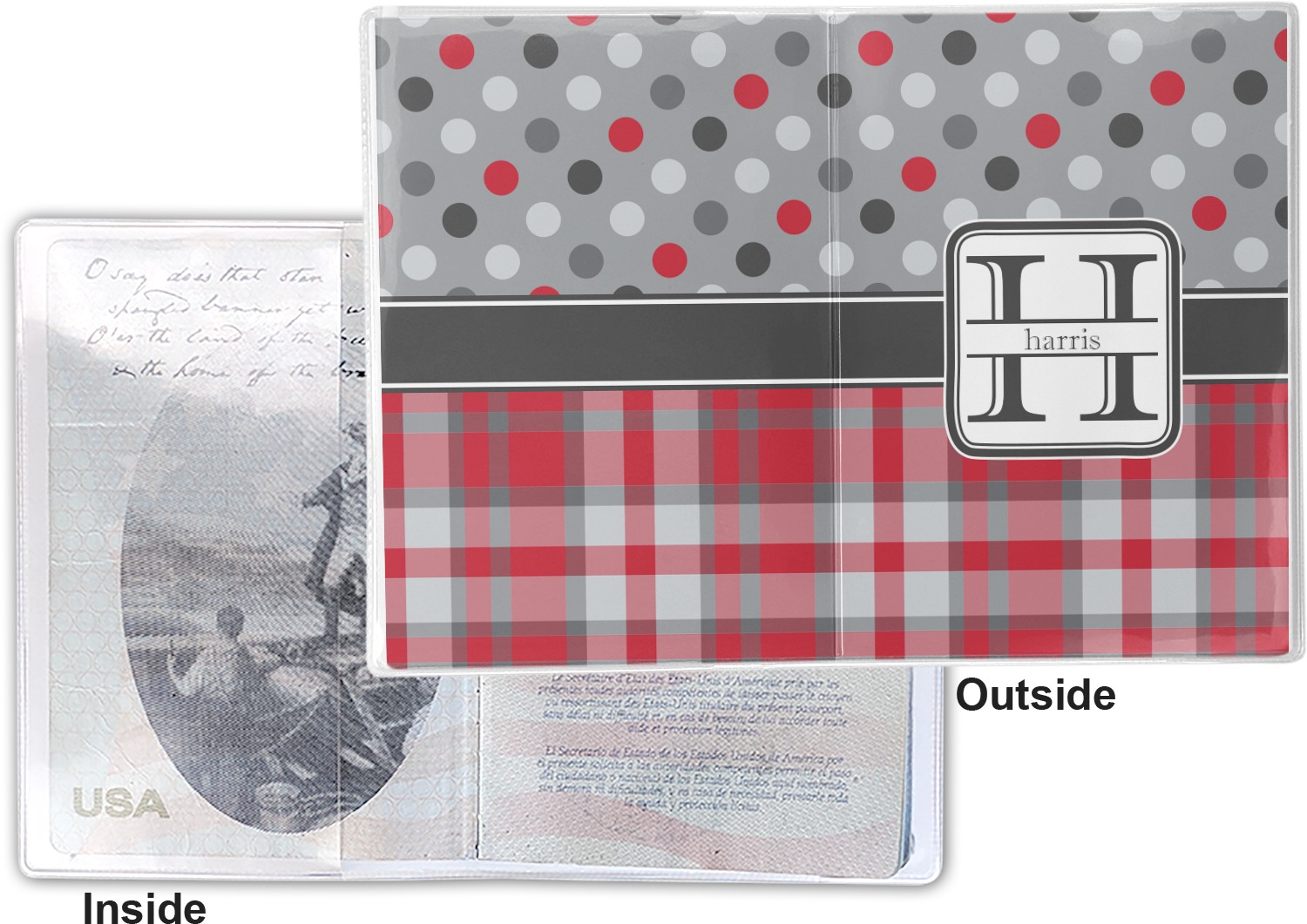 This cover is made of a sturdy clear vinyl with a personalized vinyl insert inside. There is a large and a small pocket on either side to hold the covers of your passport easily and firmly. The passport holder is approximately 7.5" x 5.25", the perfect size to snugly fit your passport. This slim cover is the perfect way to protect your passport without being one more bulky item you have to carry.