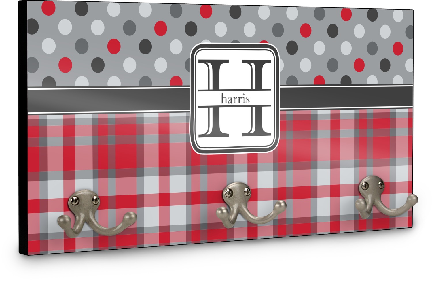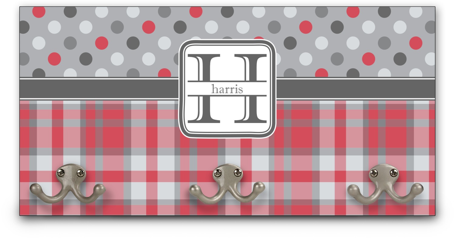 This coat rack is the perfect way to add some personality to your wall or entryway. The board is made of a strong maple that is approximately 16" x 8". The three 2-prong hooks are a sturdy metal that have three screws attaching them to the board. Your design is printed right onto the front of the board while the back and sides are a simple black.