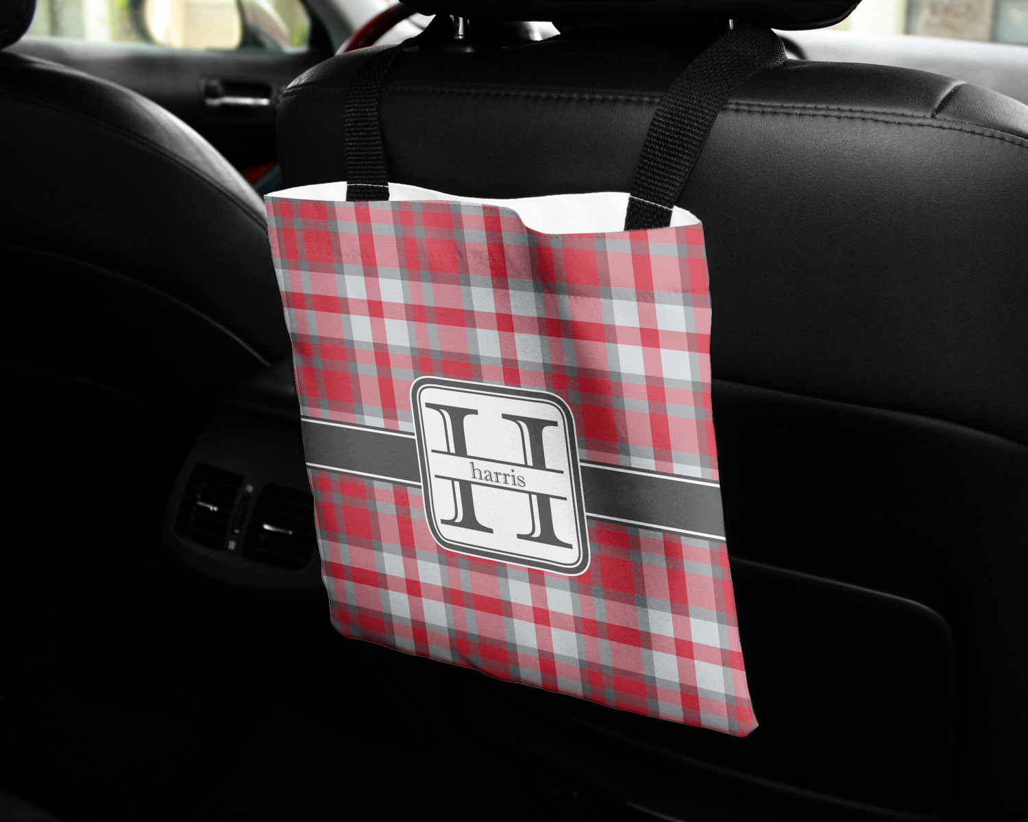 These car back seat organizers are sturdy tote-like bags, fabricated from a robust polyester, and features a single handle on the back side. The strap features an attachable velcro for easy attachment to headrests, grocery carts, car seats, and more. Simply undo the velcro, loop the strap around the headrest, reattach the velcro, and let the organizer hang from the front seat. These car organizers are the perfect means of increasing your backseat's legroom, while storing multiple items in one place for better accessibility. Each car back seat organizer measures at 10 by 10 inches, and features your personalized design printed across its front and back.