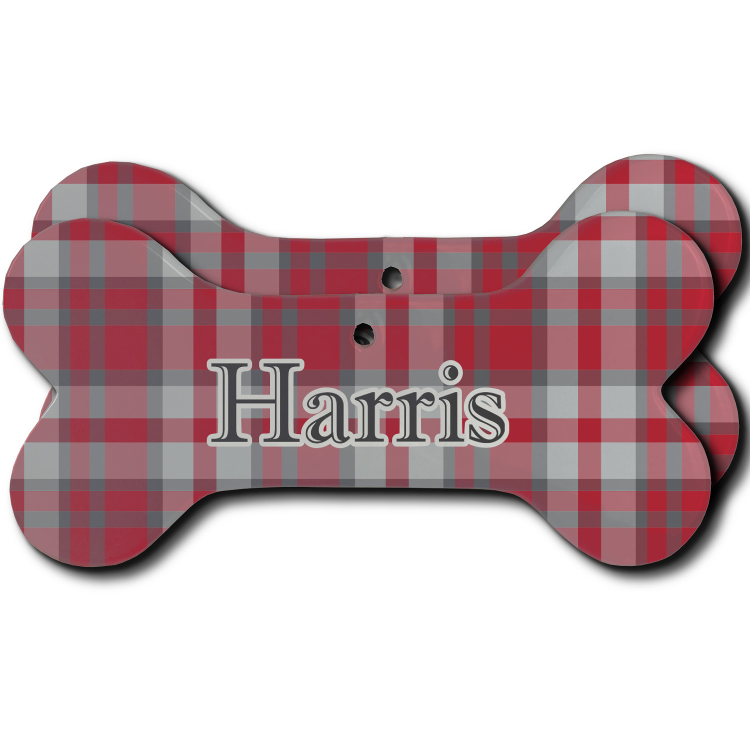 Our dog Christmas ornaments are a ceramic material with a bone-shaped structure hung horizontally. We offer two printing styles to personalize your furry friend's ornament! Choose a one-sided printing, perfect for wall decor, memorial accessory, or doghouse nameplate! Create a double-sided ornament perfect for adorning the Christmas tree. Each dog bone ornament is approximately 4.75" x 2.25" and is printed here in the USA.