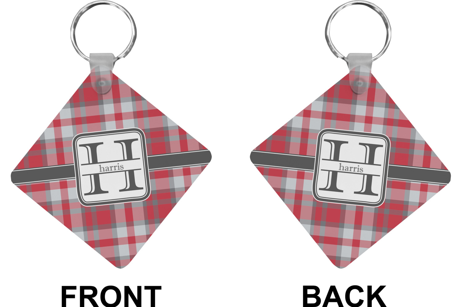 Our personalized keychains attach to the included metal, split key ring with a plastic, removable snap. Since a metal ring is included with your purchase, you have the liberty to keep your keys together on the ring, with or without your unique keychain. We offer this keychain in three different shapes: circle, heart, or diamond. We print your personalized design(s) on both sides of the key chain, and the surface has a glossy, reflective finish that only emphasizes your design. Each keychain is approximately 2.25 by 2.25 inches.