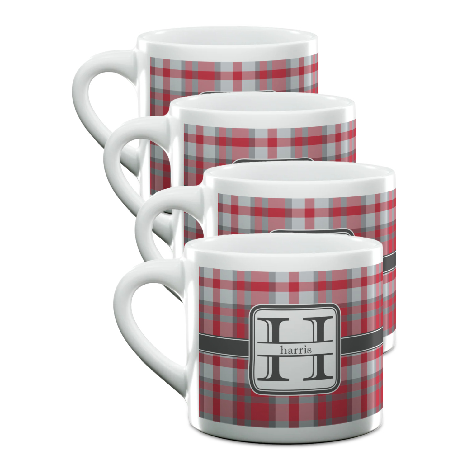 Each of our espresso mugs is a ceramic material sure to keep your drink warm. Personalize one cup for yourself, or order a set of 4! Its the perfect little gift for any coffee lover! We carry two sizes for you to personalize - 3 oz. (approx. 3.25" x 2.325" x 2.625") or 6 oz. (approx. 4" x 2.9" x 2.9"). Our 3 oz. mug is perfect for that single shot espresso while our 6 oz. mug can be your next favorite cappuccino cup holding two shots of espresso!