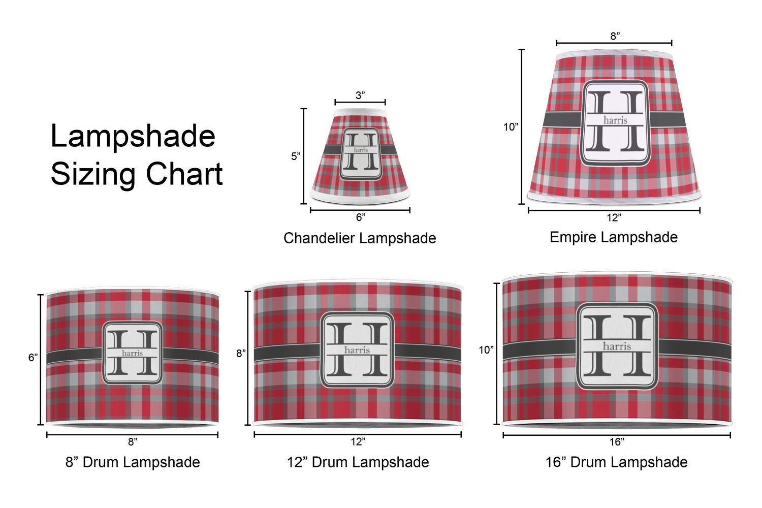 Our customized lamp shades also come in 3 different sizes: 8", 12" and 16", measuring at 8" in diameter by 6" tall, 12" in diameter by 8" tall, and 16" in diameter by 10" tall, respectively.