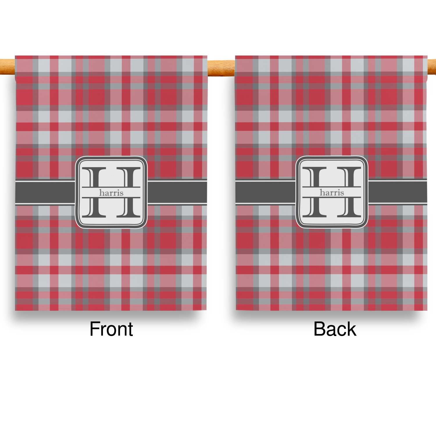 These custom garden flags are made of a durable, double-ply, polyester weave, allowing them to withstand the elements year round. The small flags measure at approximately 12 by 18 inches. The large flags measure out to 28 by 37 inches. You can order these decorative flags with your customization printed on the front only, or the front and back.