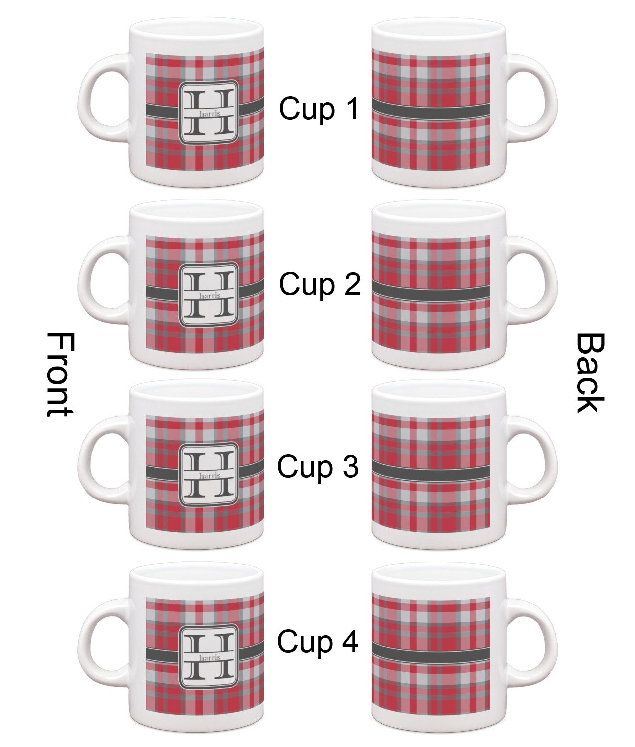 Each of our espresso mugs is a ceramic material sure to keep your drink warm. Personalize one cup for yourself, or order a set of 4! Its the perfect little gift for any coffee lover! We carry two sizes for you to personalize - 3 oz. (approx. 3.25" x 2.325" x 2.625") or 6 oz. (approx. 4" x 2.9" x 2.9"). Our 3 oz. mug is perfect for that single shot espresso while our 6 oz. mug can be your next favorite cappuccino cup holding two shots of espresso!
