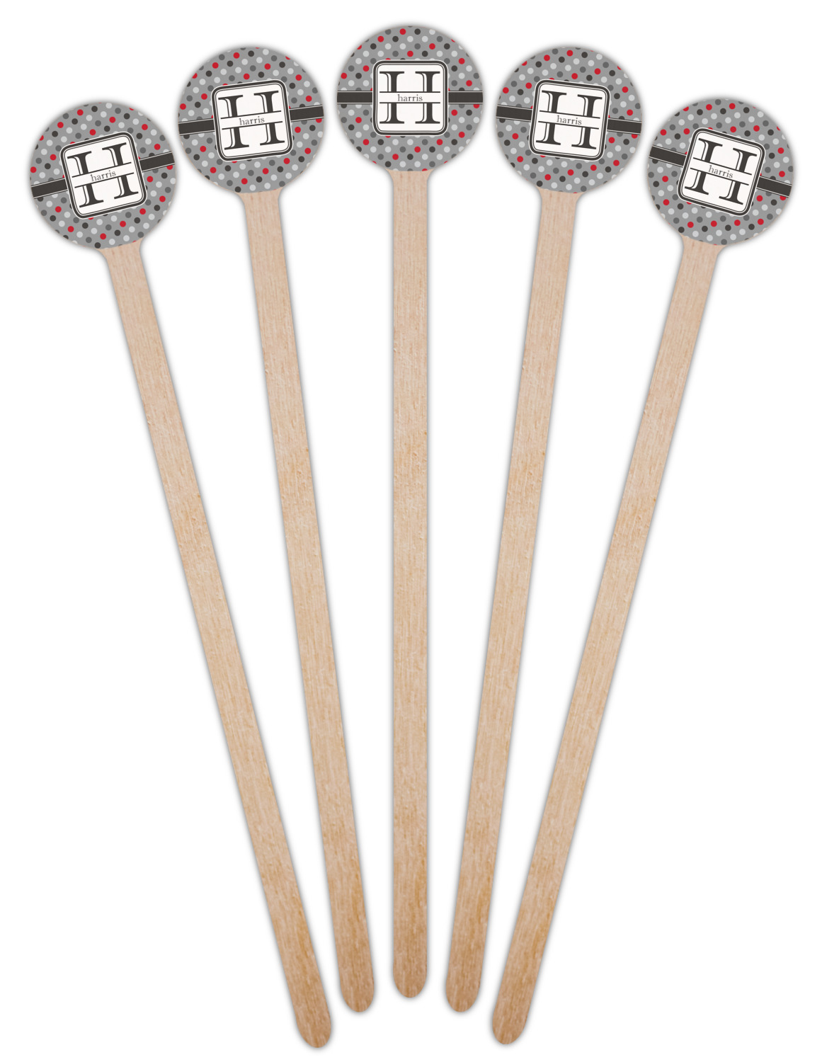Shape + Symbol Designs for 7.5" Round Wooden Stir Sticks - Single-Sided