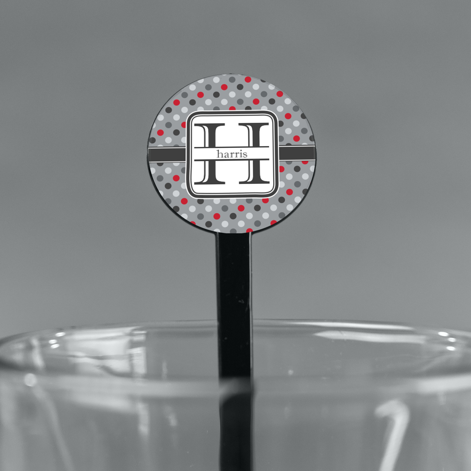 Shape + Symbol Designs for 7" Round Plastic Stir Sticks - Black - Single-Sided