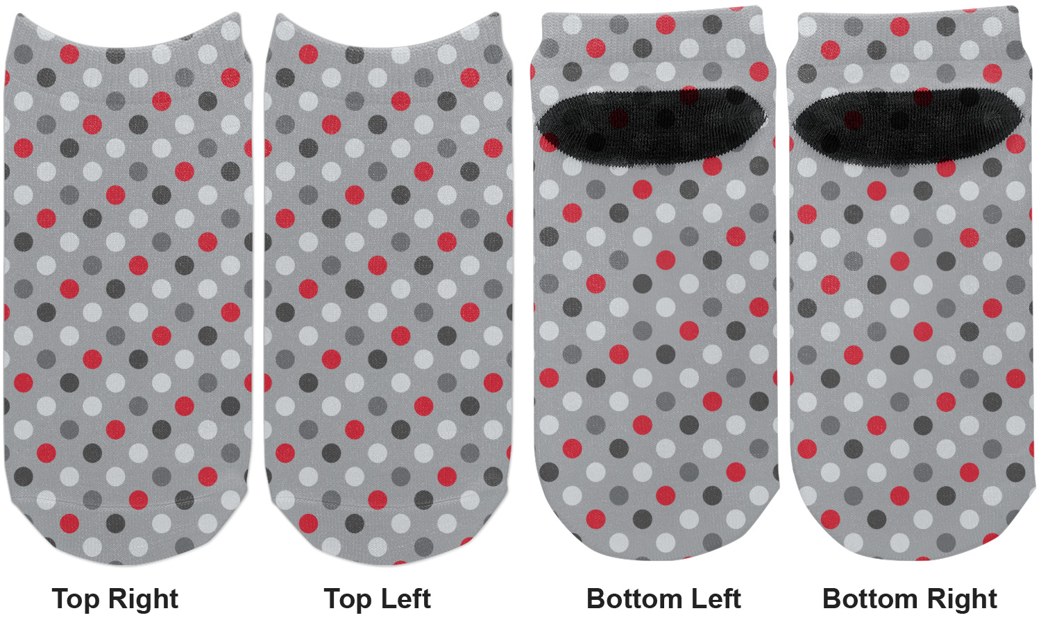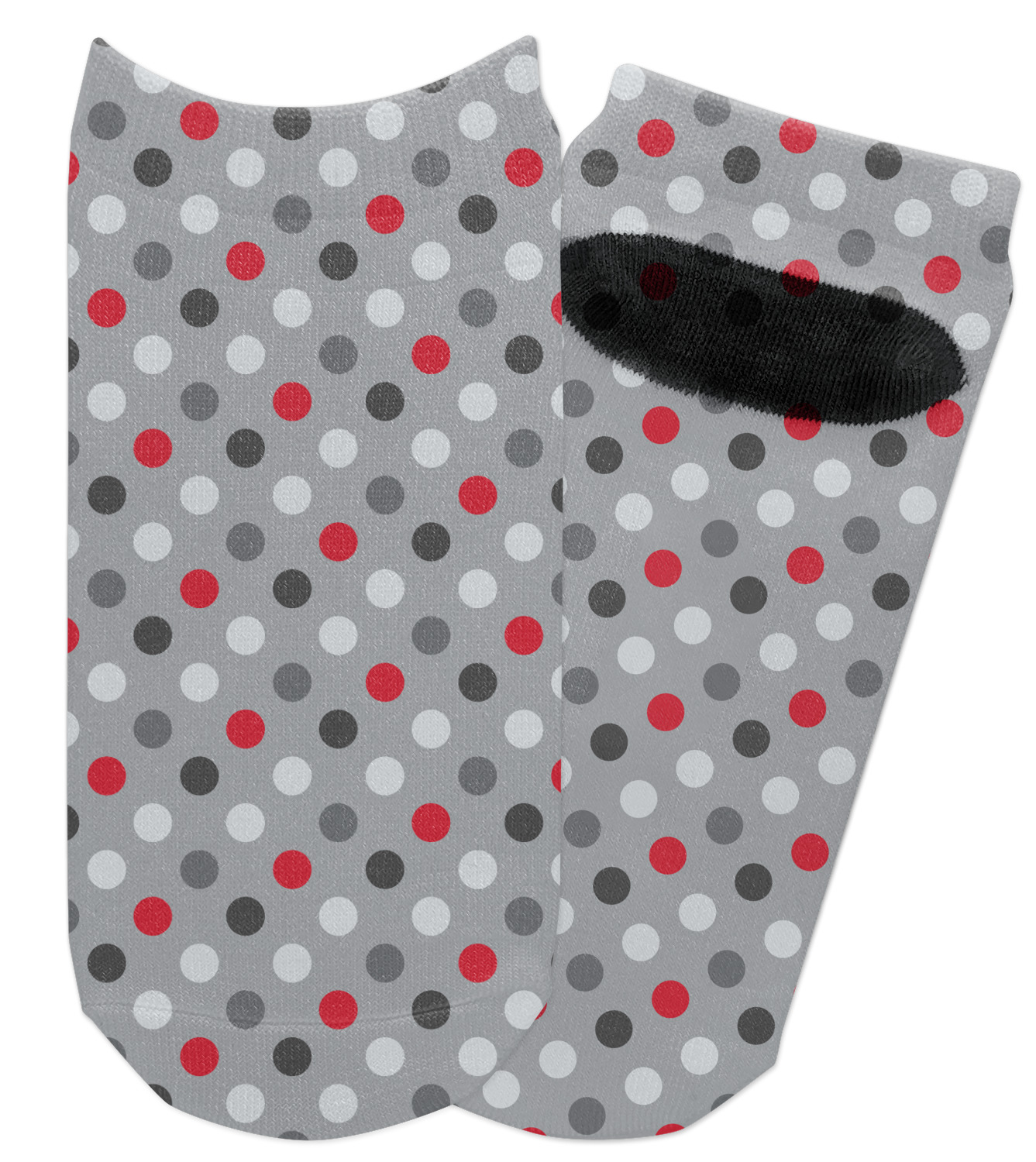 Polka dots have grown up and are not just for kids anymore. We have taken a pattern that is normally for children and by adding a modern color scheme have created a very versatile design that can be used for both adults and children. The polka dot design is set on a background of medium gray. Using coordinating colors of different shades of gray and red creates a very modern take on the timeless polka dot pattern.