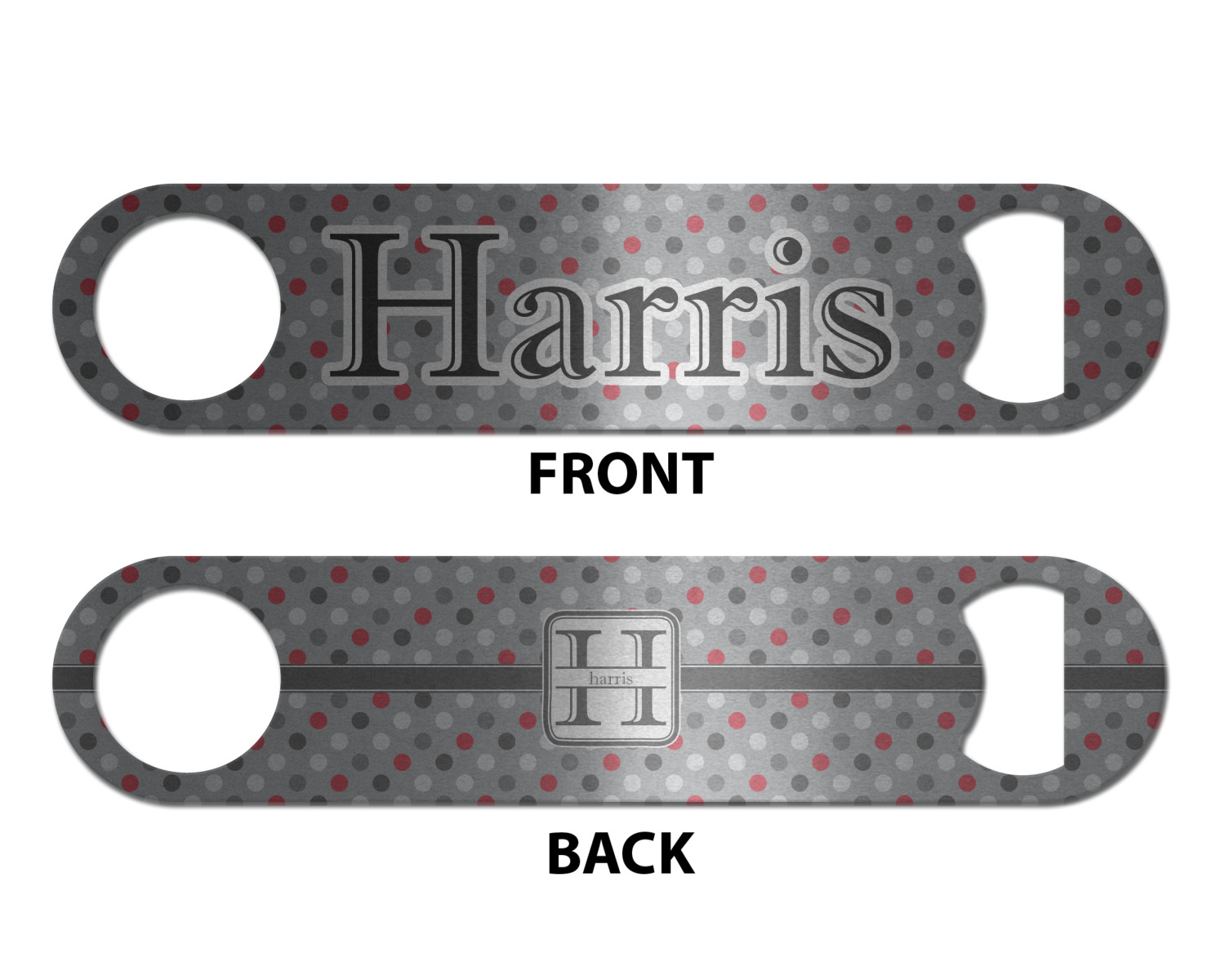 Stop struggling with the caps or your bottled beverages by purchasing one of our personalized bottle openers! These wrench-like custom bar blades are built to last. Customize one for your home's bar, or as a practical gift for a loved one!