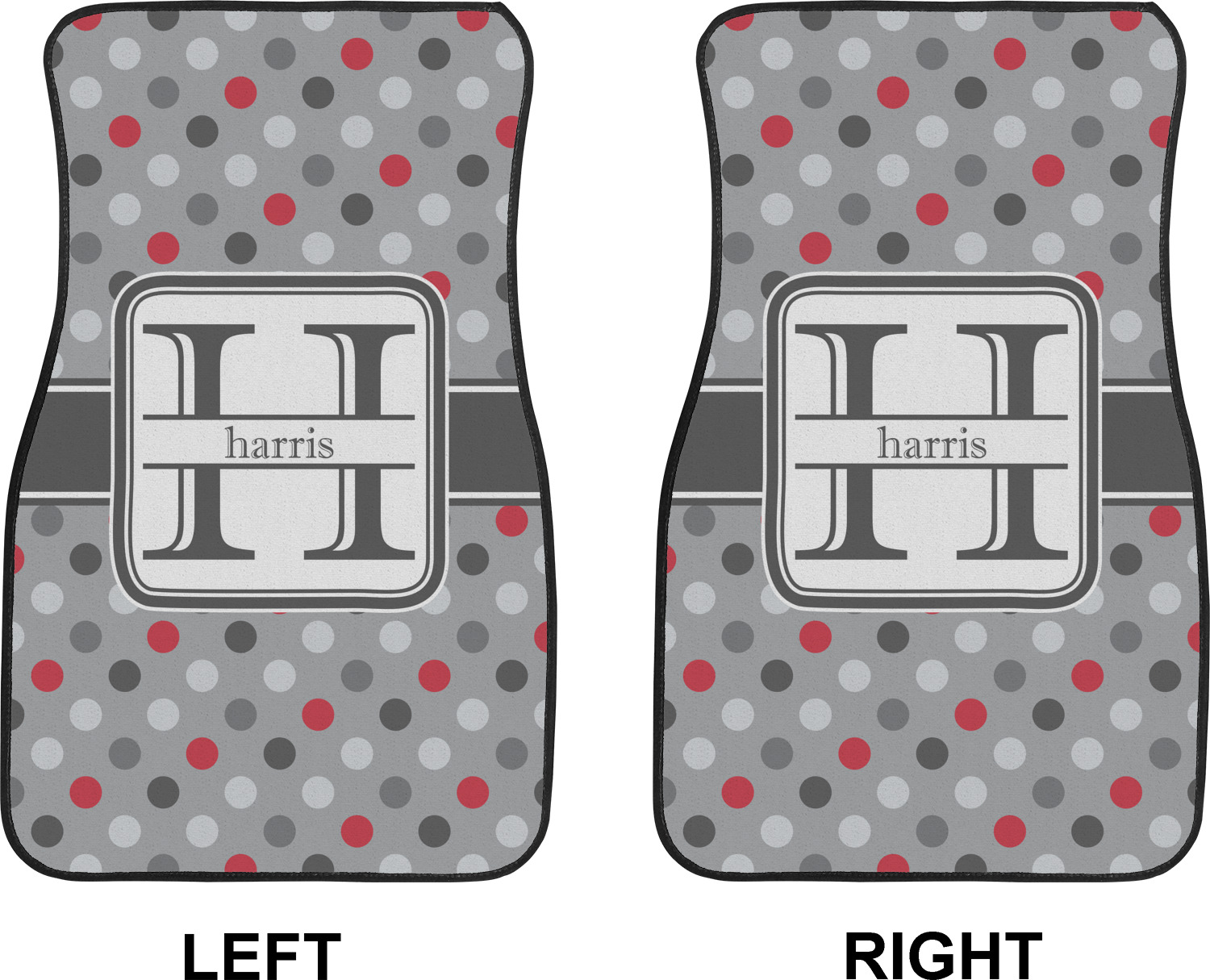 We craft our auto floor mats mats from polyester, apply a black finish to the edges, and lined at the bottom to prevent slippage. These mats protect your floors from grass, mud, and any accidental spills. We display your personalized design on the front face of each mat. The sizes of these car floor liners are standardized to provide a versatile fit for all vehicles. The front rows car mats measure at 17 by 26.5 inches, while the back rows measure at 17 by 13 inches. We sell three packages of car floor mats. You can purchase a pair of front row car mats, a pair of back row car mats, or a set of front row and back row car mats. To make an informed purchase, we recommend measuring the surface area of your car floors.