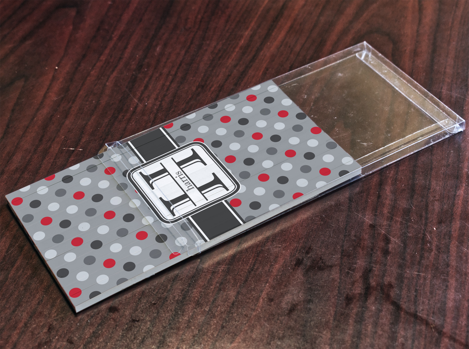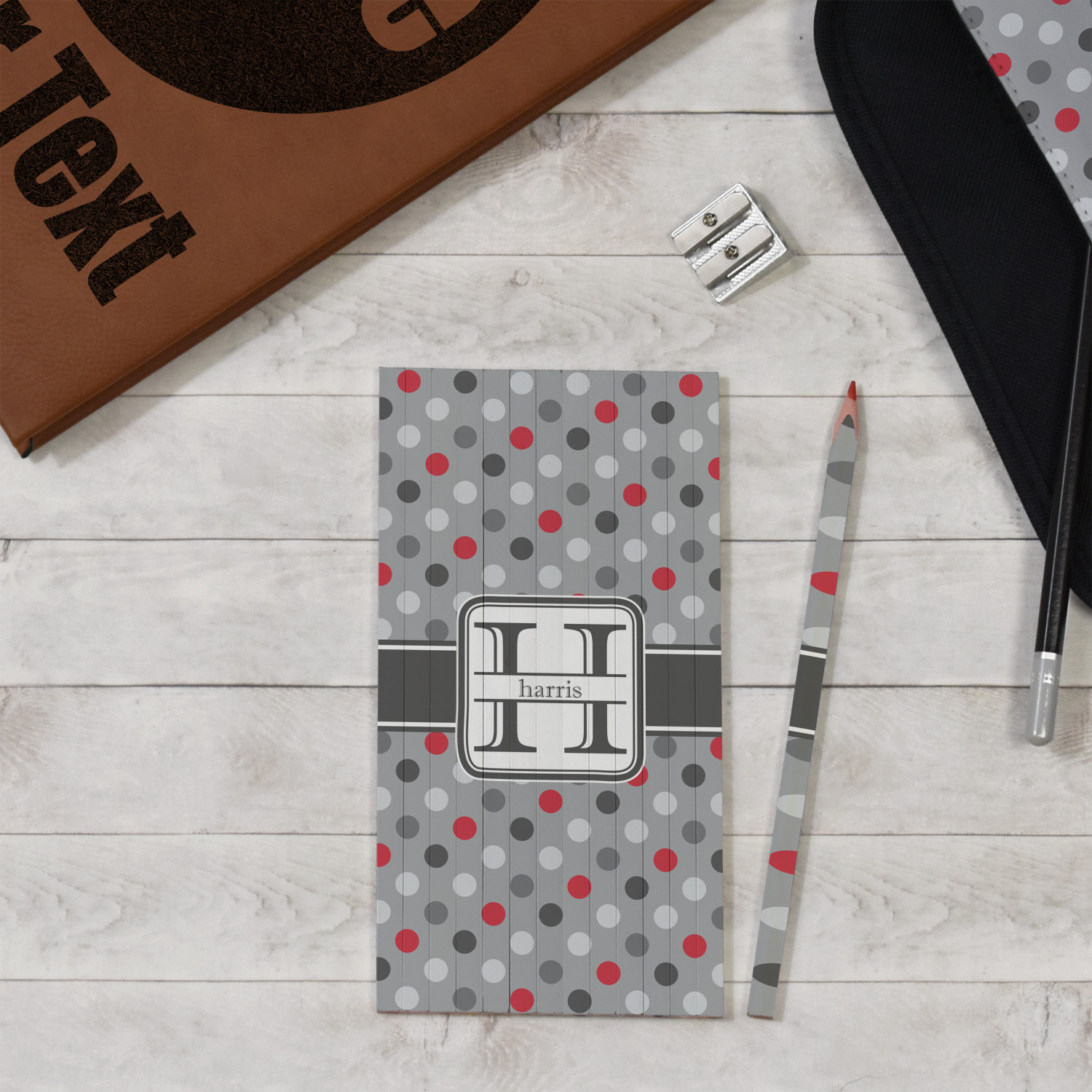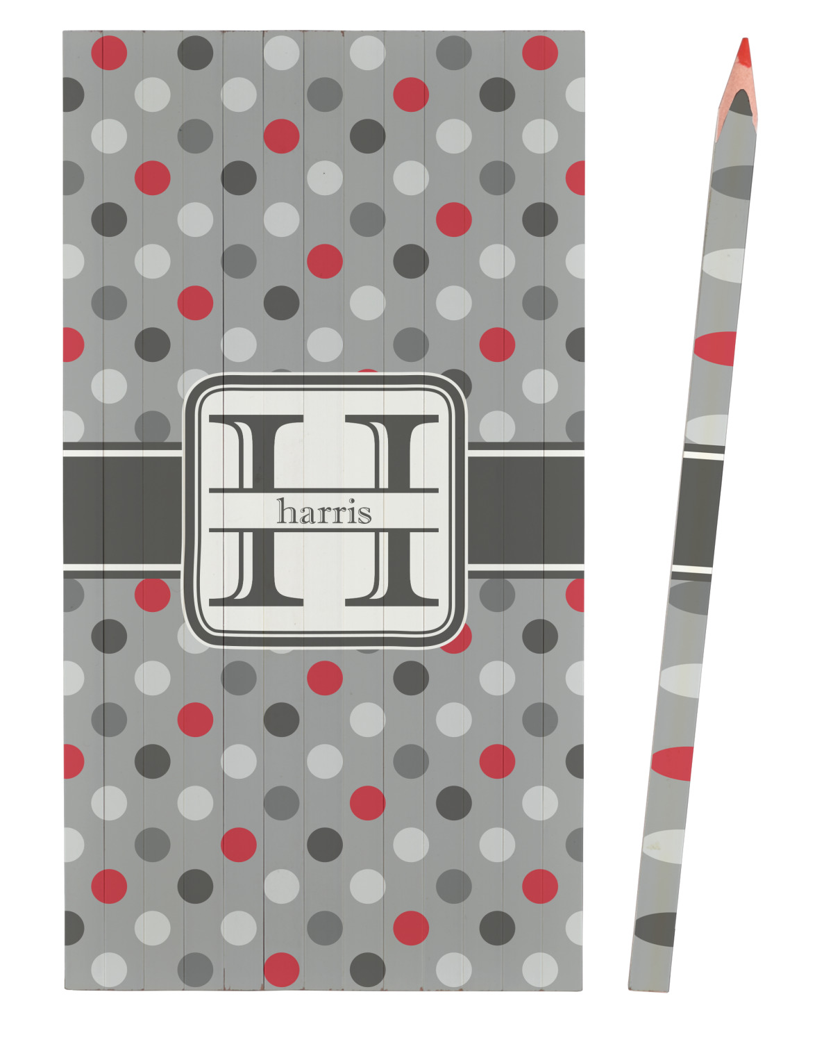 Polka dots have grown up and are not just for kids anymore. We have taken a pattern that is normally for children and by adding a modern color scheme have created a very versatile design that can be used for both adults and children. The polka dot design is set on a background of medium gray. Using coordinating colors of different shades of gray and red creates a very modern take on the timeless polka dot pattern.