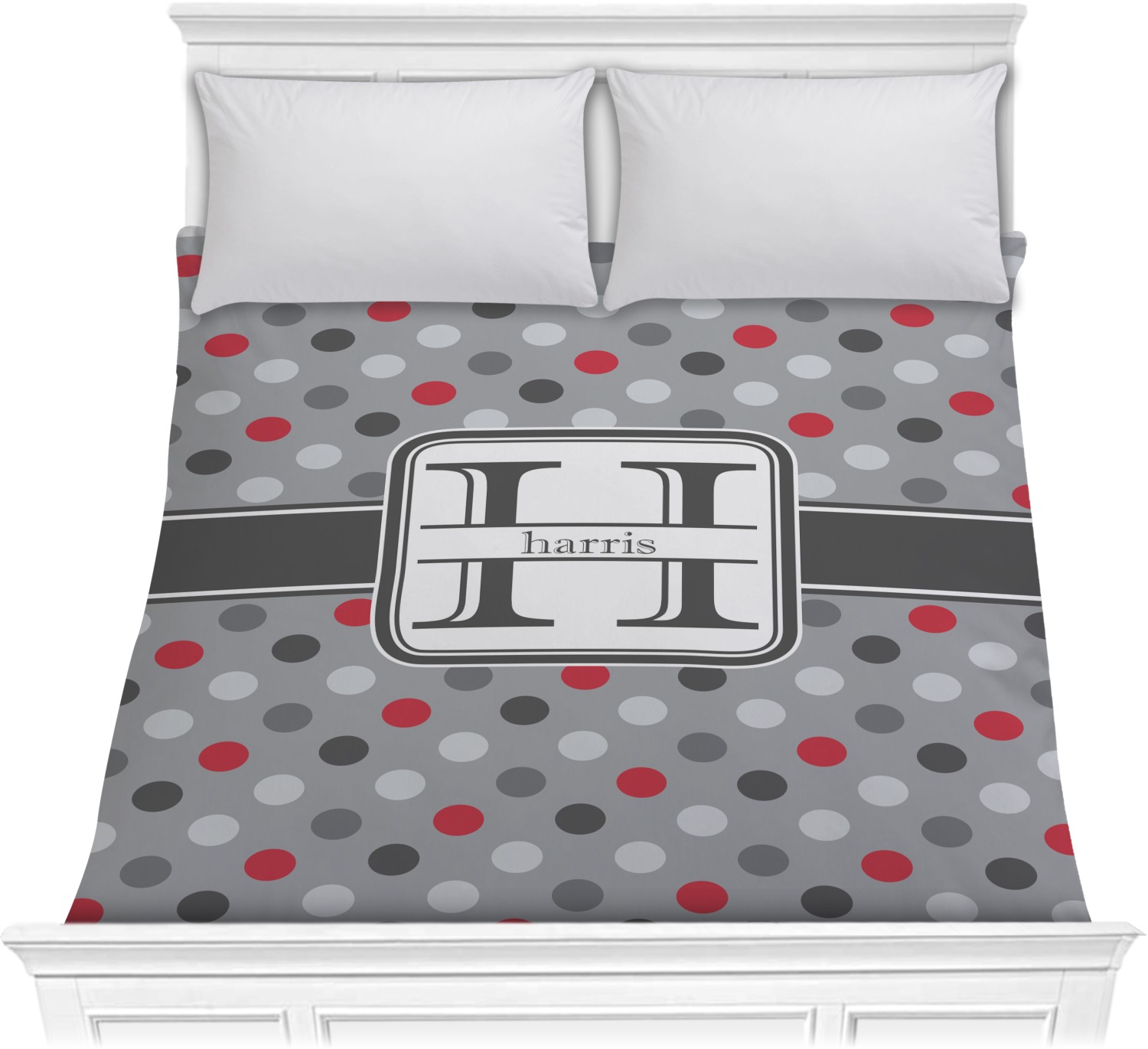 Polka dots have grown up and are not just for kids anymore. We have taken a pattern that is normally for children and by adding a modern color scheme have created a very versatile design that can be used for both adults and children. The polka dot design is set on a background of medium gray. Using coordinating colors of different shades of gray and red creates a very modern take on the timeless polka dot pattern.