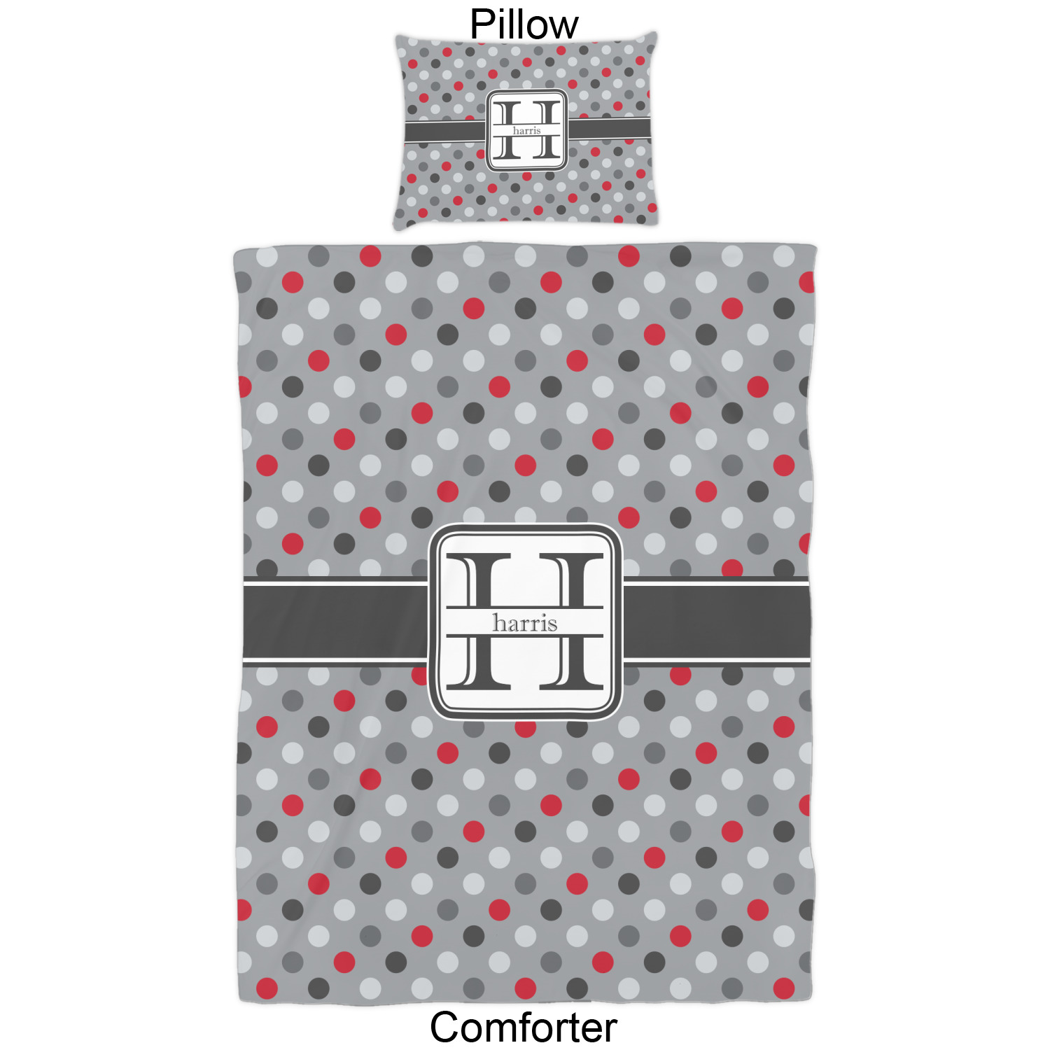 Polka dots have grown up and are not just for kids anymore. We have taken a pattern that is normally for children and by adding a modern color scheme have created a very versatile design that can be used for both adults and children. The polka dot design is set on a background of medium gray. Using coordinating colors of different shades of gray and red creates a very modern take on the timeless polka dot pattern.