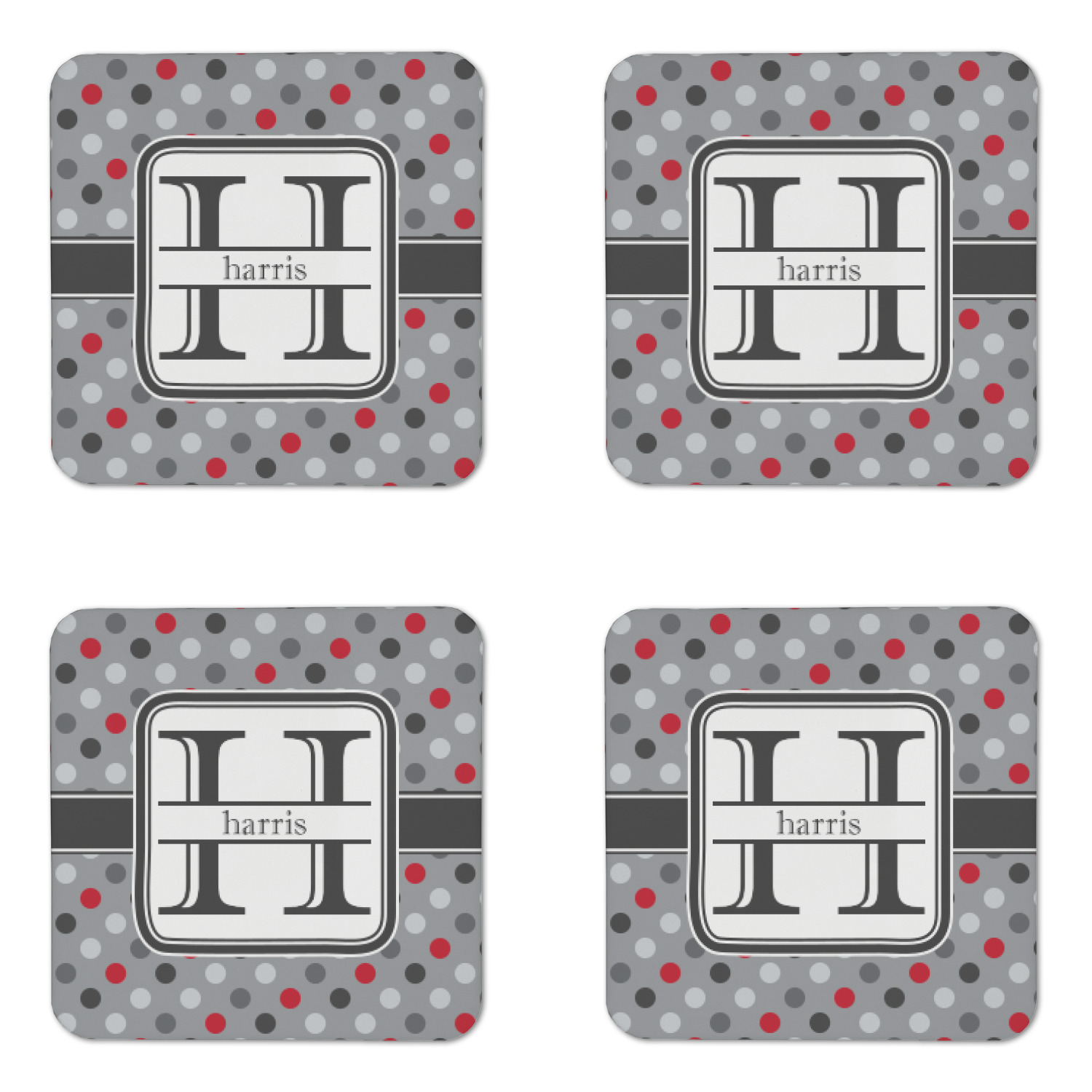 Polka dots have grown up and are not just for kids anymore. We have taken a pattern that is normally for children and by adding a modern color scheme have created a very versatile design that can be used for both adults and children. The polka dot design is set on a background of medium gray. Using coordinating colors of different shades of gray and red creates a very modern take on the timeless polka dot pattern.