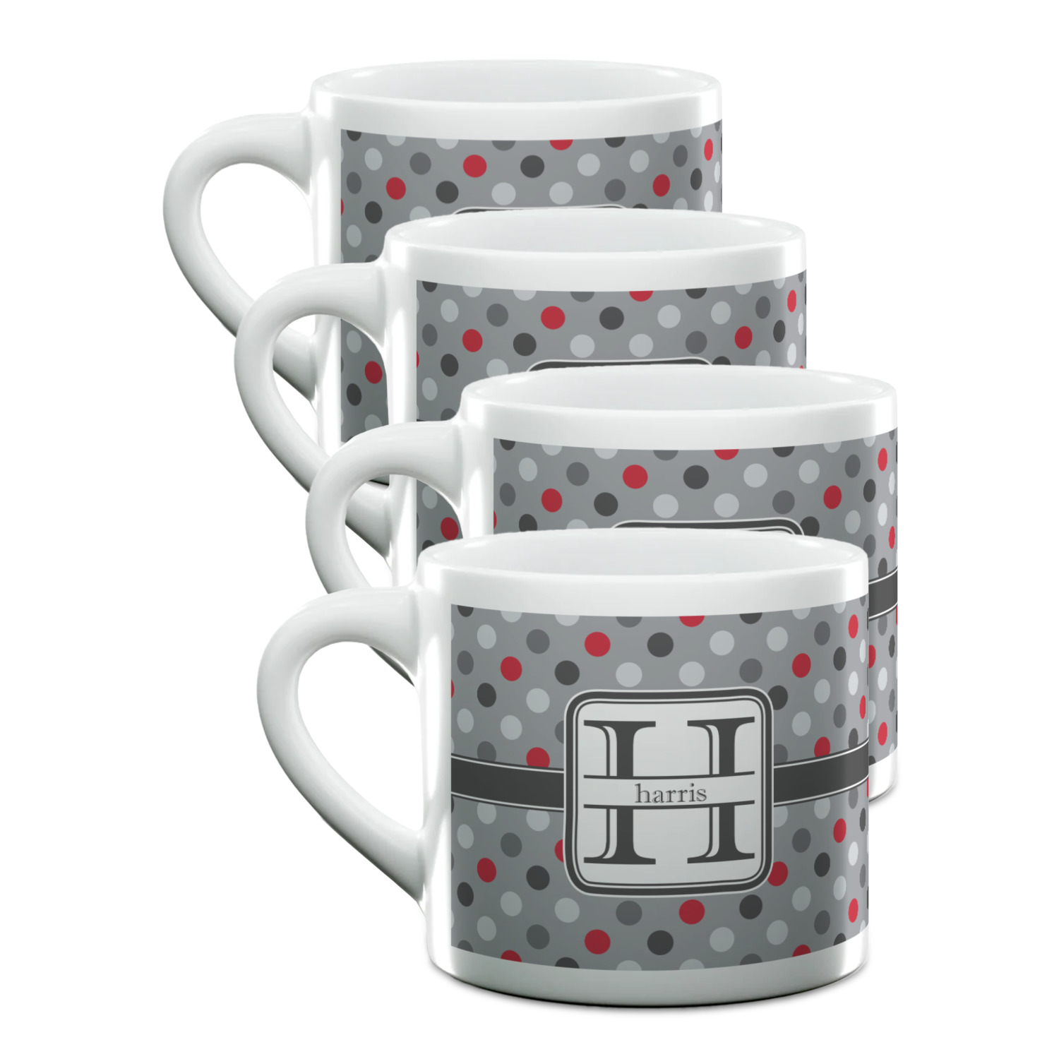 Each of our espresso mugs is a ceramic material sure to keep your drink warm. Personalize one cup for yourself, or order a set of 4! Its the perfect little gift for any coffee lover! We carry two sizes for you to personalize - 3 oz. (approx. 3.25" x 2.325" x 2.625") or 6 oz. (approx. 4" x 2.9" x 2.9"). Our 3 oz. mug is perfect for that single shot espresso while our 6 oz. mug can be your next favorite cappuccino cup holding two shots of espresso!