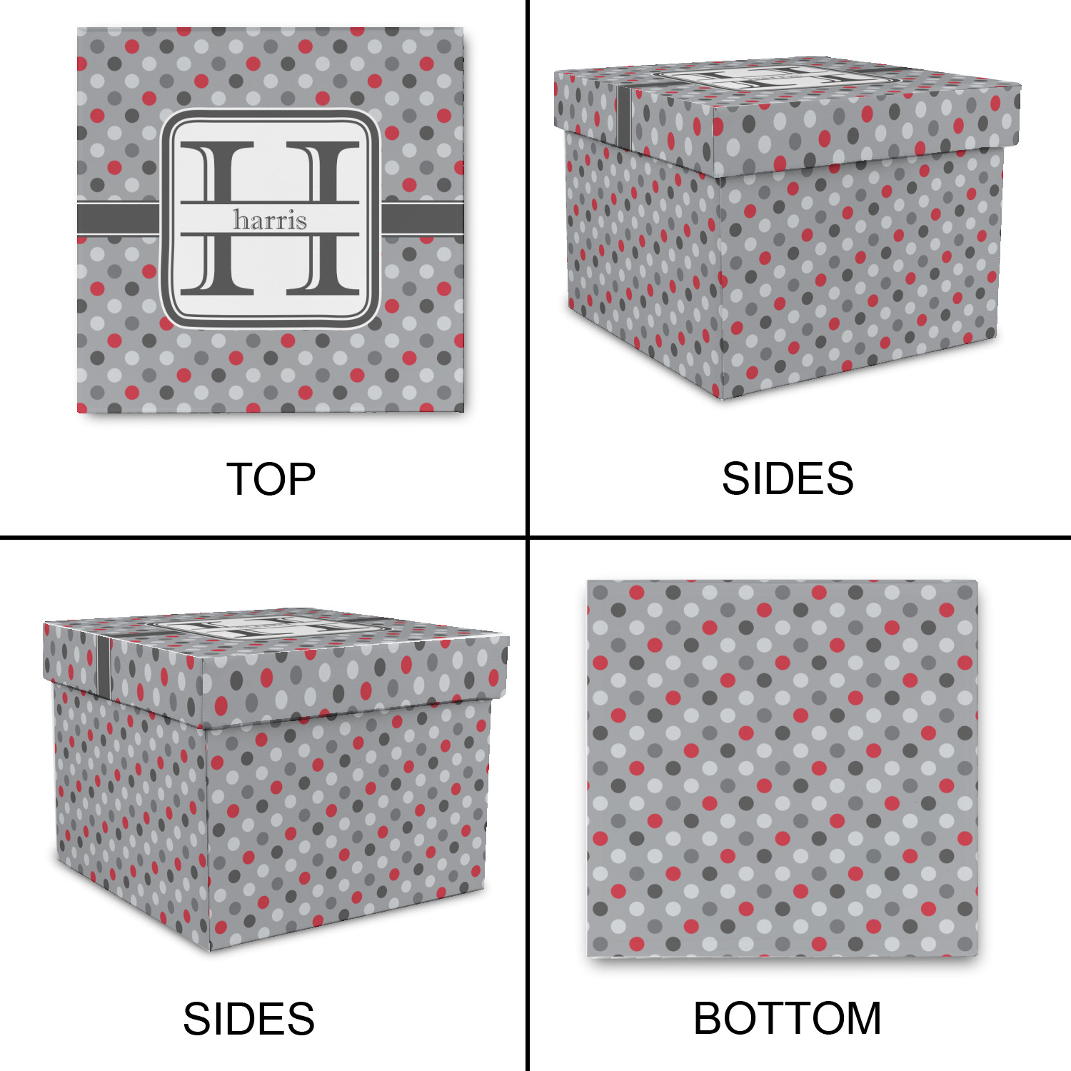 Polka dots have grown up and are not just for kids anymore. We have taken a pattern that is normally for children and by adding a modern color scheme have created a very versatile design that can be used for both adults and children. The polka dot design is set on a background of medium gray. Using coordinating colors of different shades of gray and red creates a very modern take on the timeless polka dot pattern.