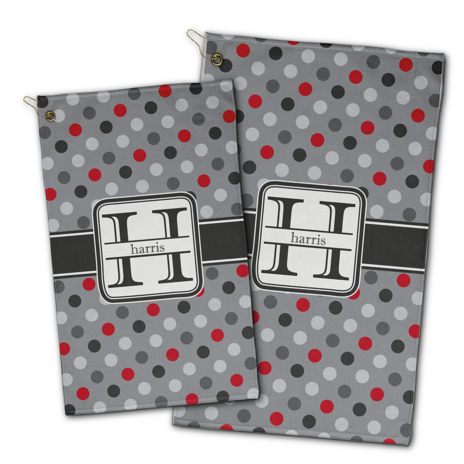 These golf towels are come in 2 sizes: Small: 11"x 18" and Large: 15" x 25" in dimension.