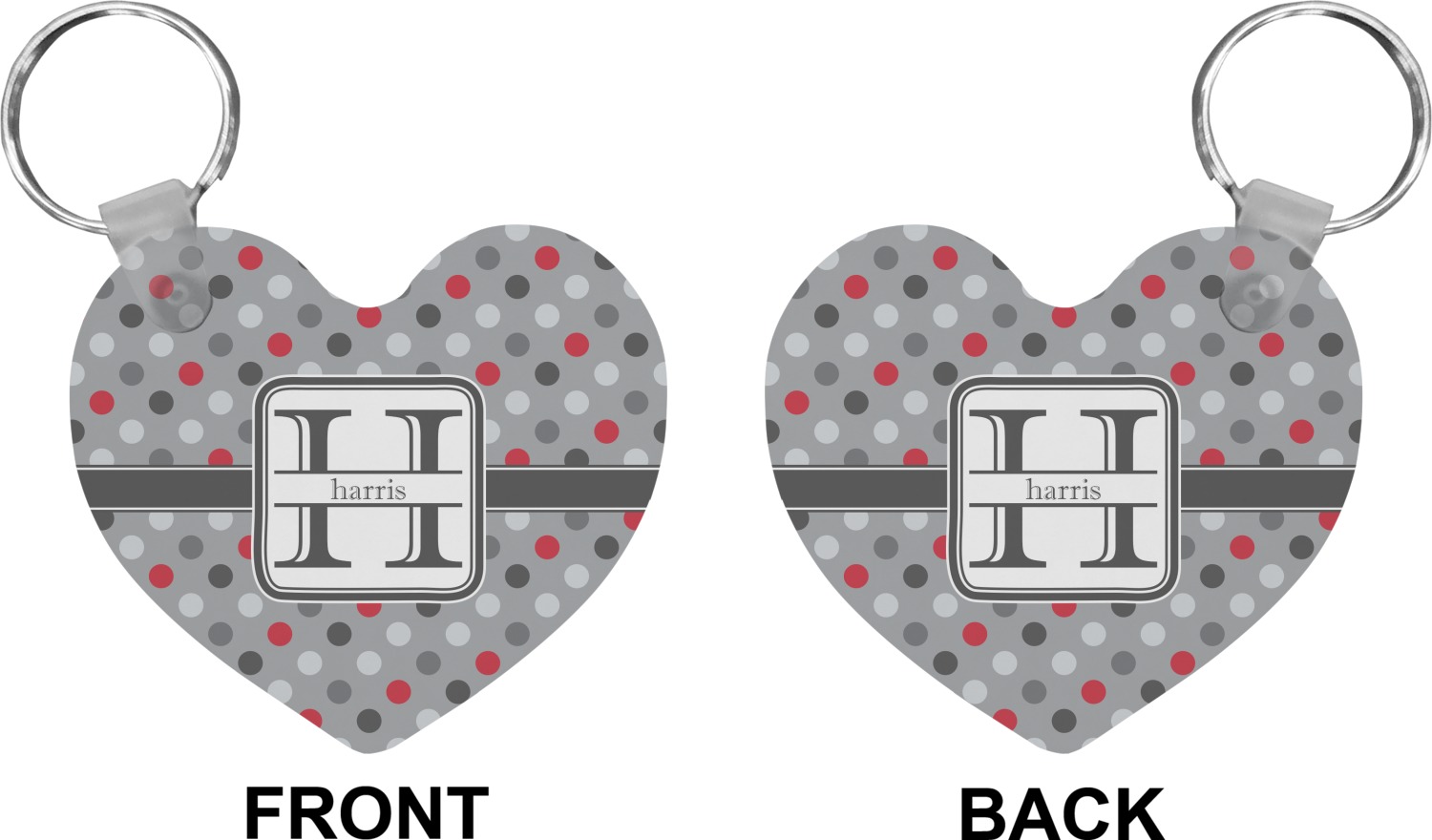 Our personalized keychains attach to the included metal, split key ring with a plastic, removable snap. Since a metal ring is included with your purchase, you have the liberty to keep your keys together on the ring, with or without your unique keychain. We offer this keychain in three different shapes: circle, heart, or diamond. We print your personalized design(s) on both sides of the key chain, and the surface has a glossy, reflective finish that only emphasizes your design. Each keychain is approximately 2.25 by 2.25 inches.