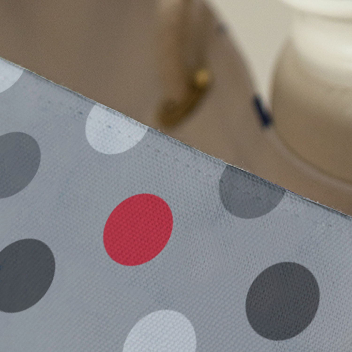 Polka dots have grown up and are not just for kids anymore. We have taken a pattern that is normally for children and by adding a modern color scheme have created a very versatile design that can be used for both adults and children. The polka dot design is set on a background of medium gray. Using coordinating colors of different shades of gray and red creates a very modern take on the timeless polka dot pattern.