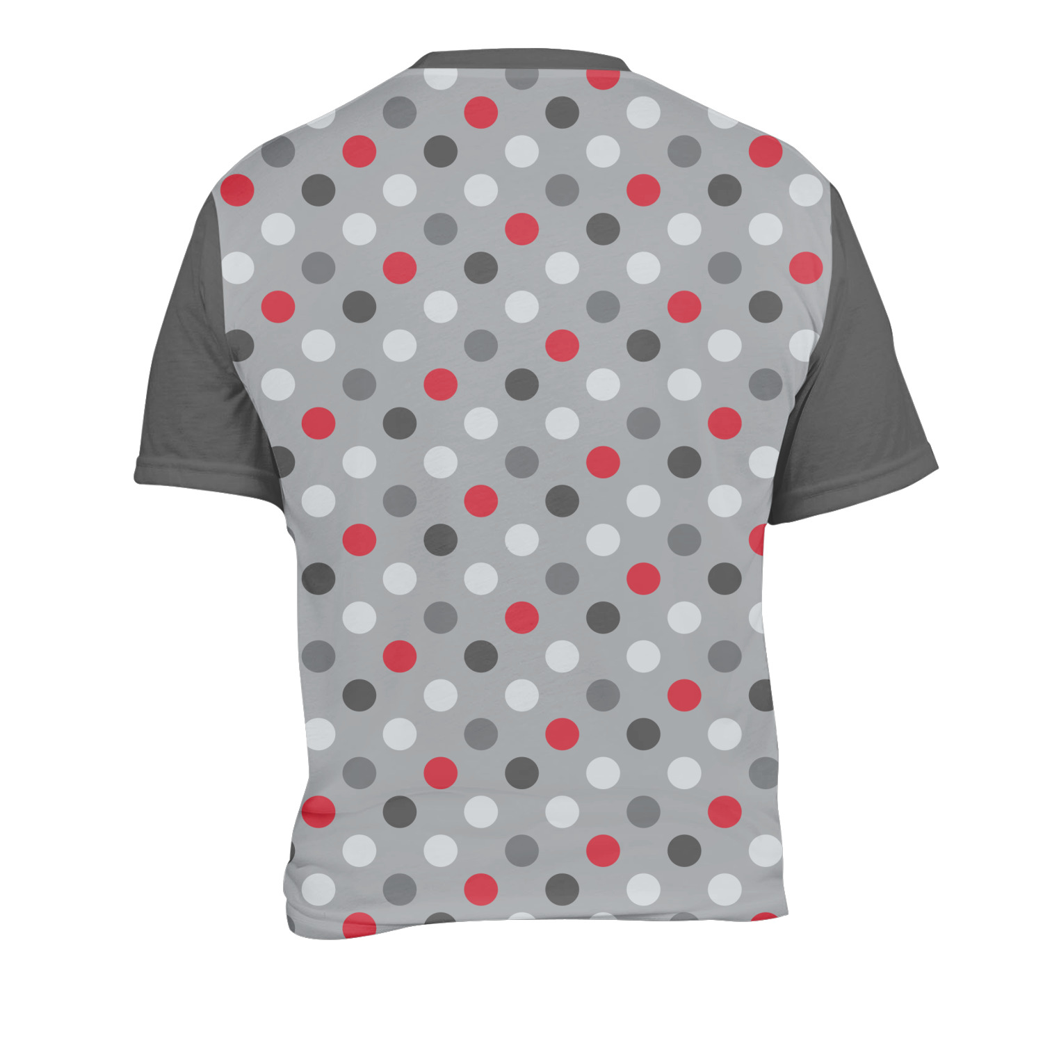 Polka dots have grown up and are not just for kids anymore. We have taken a pattern that is normally for children and by adding a modern color scheme have created a very versatile design that can be used for both adults and children. The polka dot design is set on a background of medium gray. Using coordinating colors of different shades of gray and red creates a very modern take on the timeless polka dot pattern.