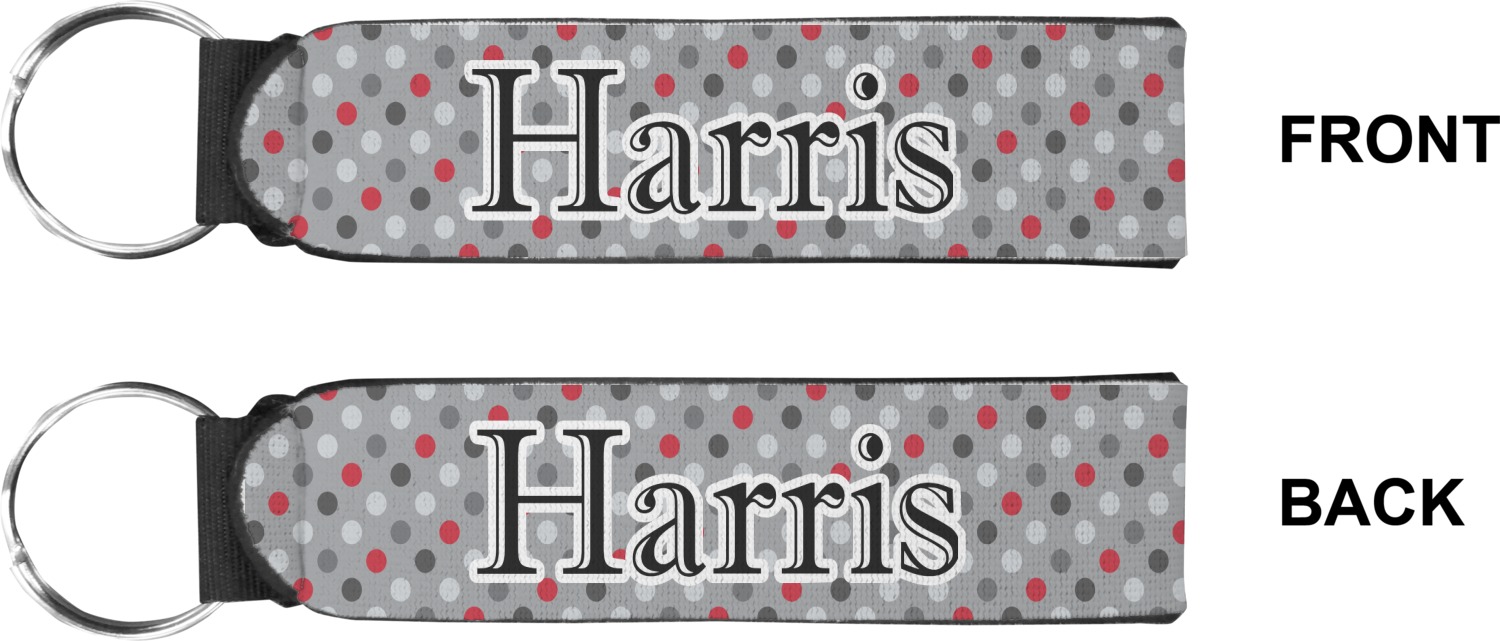 Made from neoprene, these key fob wristlets are comfortable, cushioned, easy to slip on and off; these traits allow it to maintain a slim, yet fashionable appearance, all while optimizing your efficiency. When attaching or removing keys, simply squeeze open the included metal ring. These fobs measure at around 4 inches, and have a bit of a stretch. Thus, they are best suited for small to medium size wrists. If you require a larger size, check out our webbing keychain fob for larger sizing.