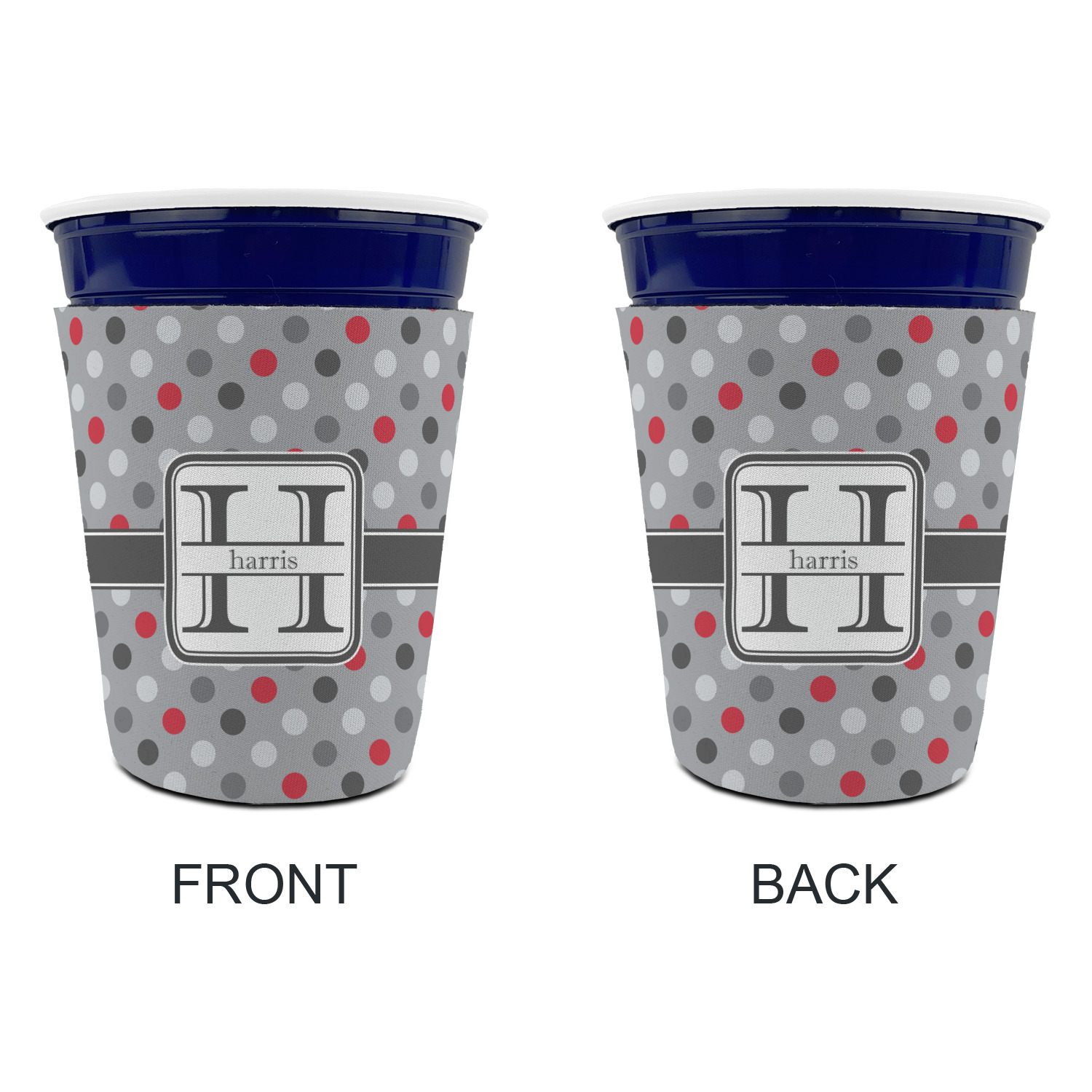 Made from neoprene with a polyester outer fabric and sewn seams, these premium quality party cup sleeves are very durable and will hold up to heavy use. They are available in 2 styles - with a bottom or just a sleeve to go around the outside of the tapered cup. The sleeve covers are about 4" tall and cover about 90% of the classic 16 oz. Solo cup.