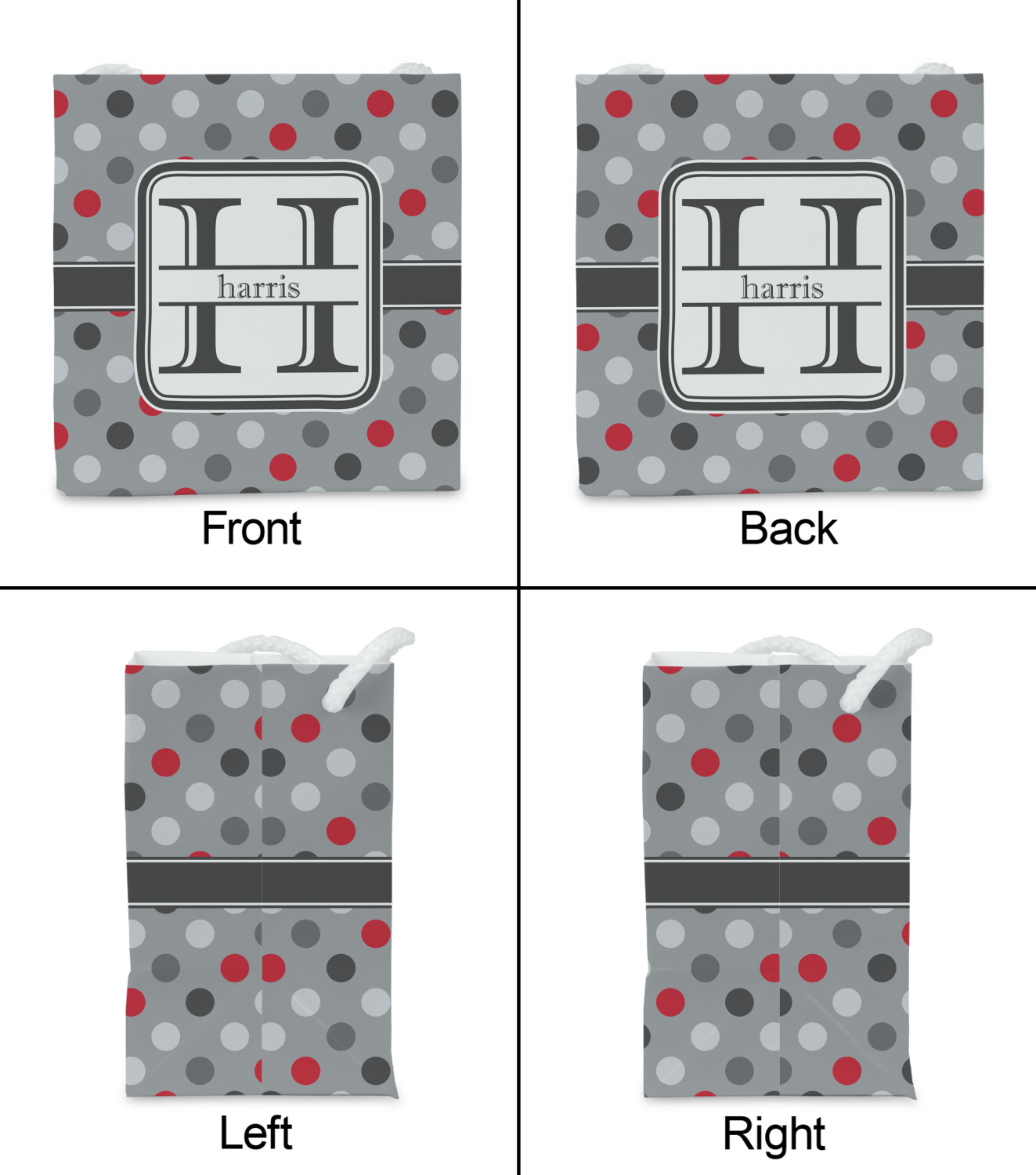 Polka dots have grown up and are not just for kids anymore. We have taken a pattern that is normally for children and by adding a modern color scheme have created a very versatile design that can be used for both adults and children. The polka dot design is set on a background of medium gray. Using coordinating colors of different shades of gray and red creates a very modern take on the timeless polka dot pattern.